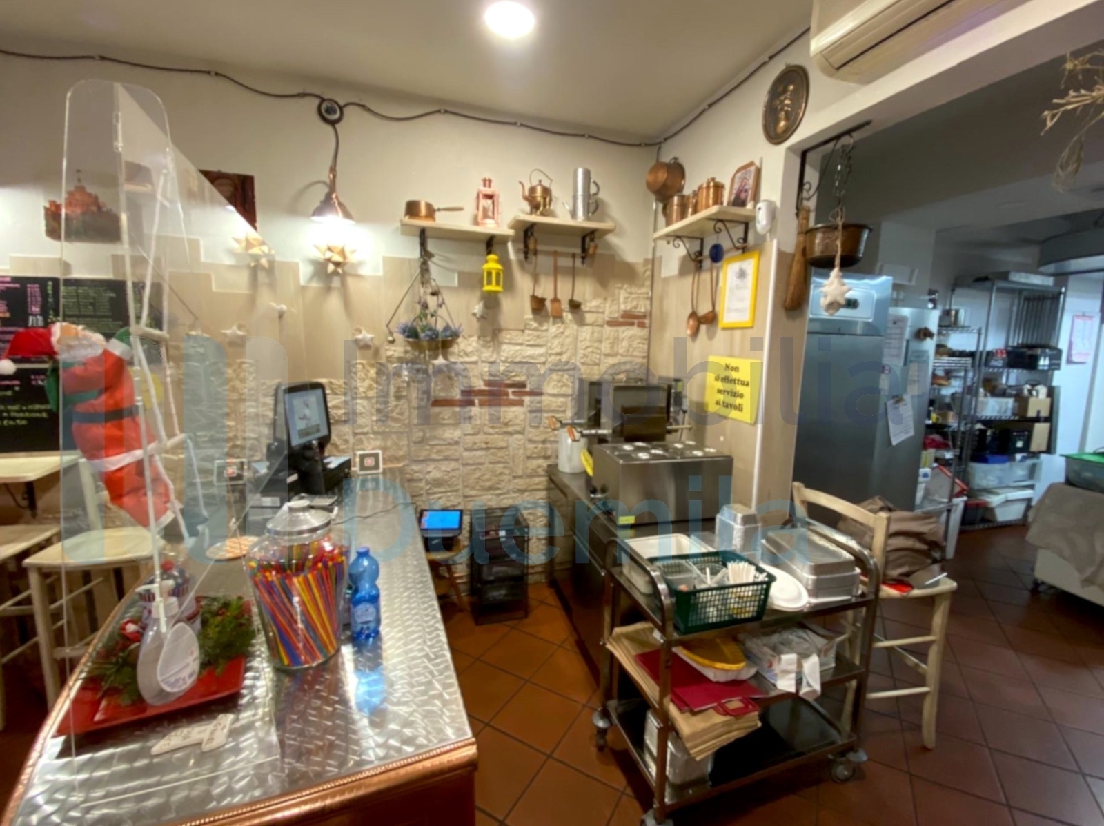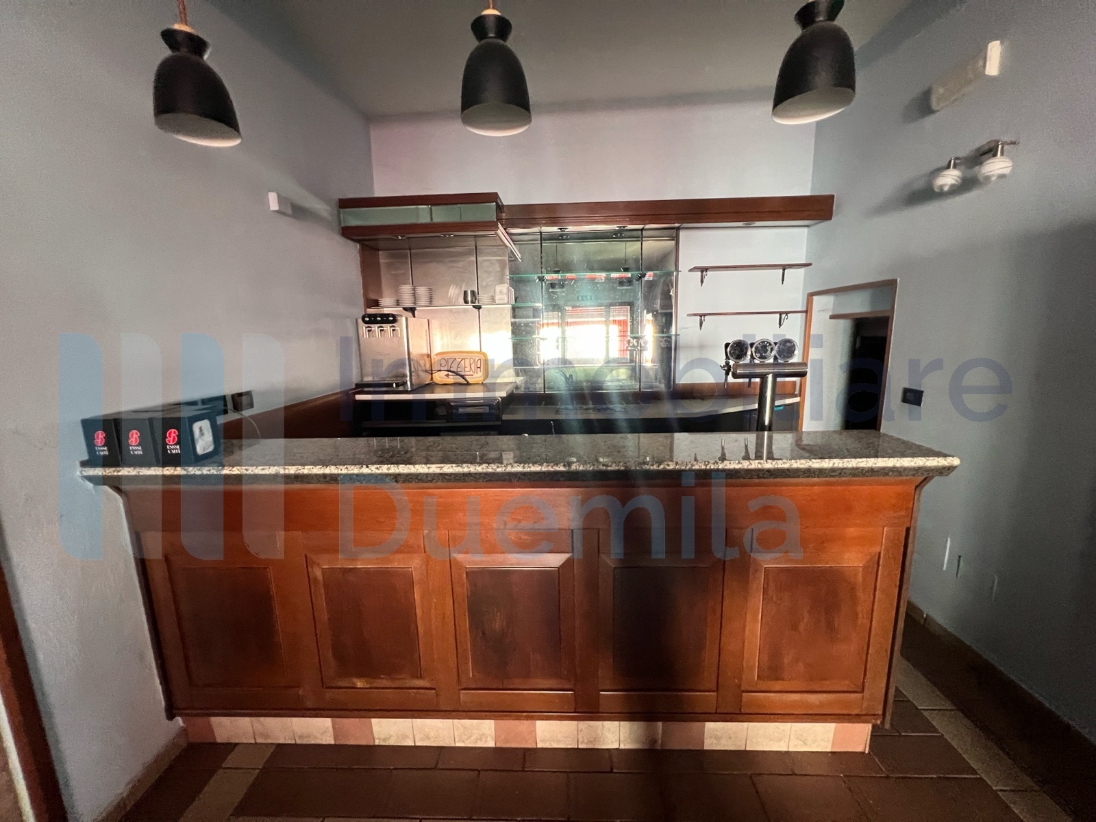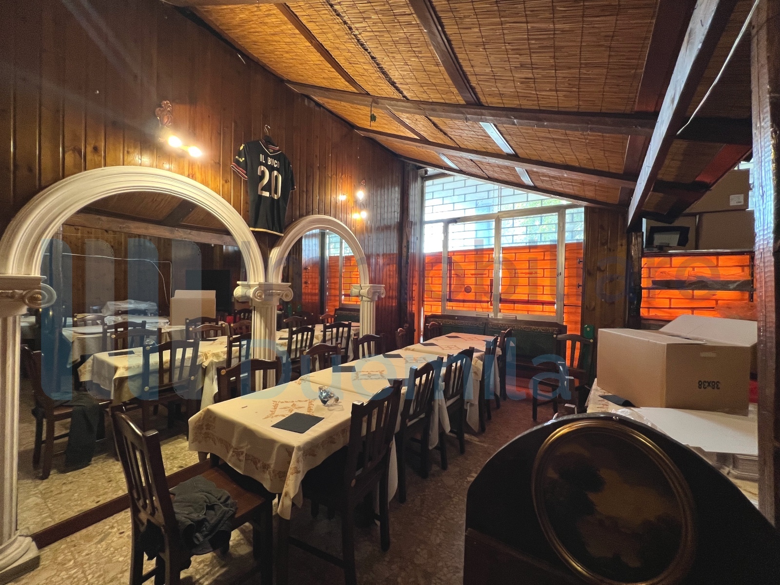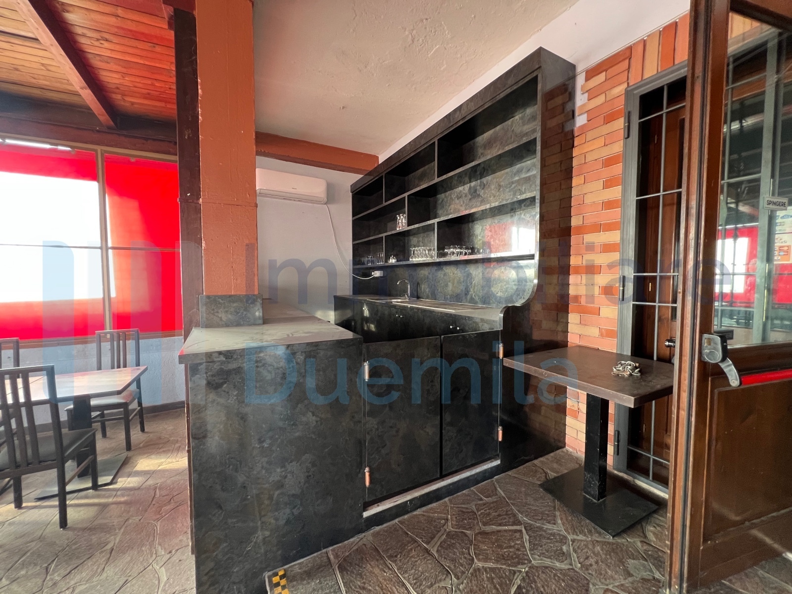 LOCALE COMMERCIALE Baricella su strada alto passaggio, 4 vani oltre accessori, canna fumaria, dehors coperto e parcheggio privato, locazione euro 1.500 mensili.