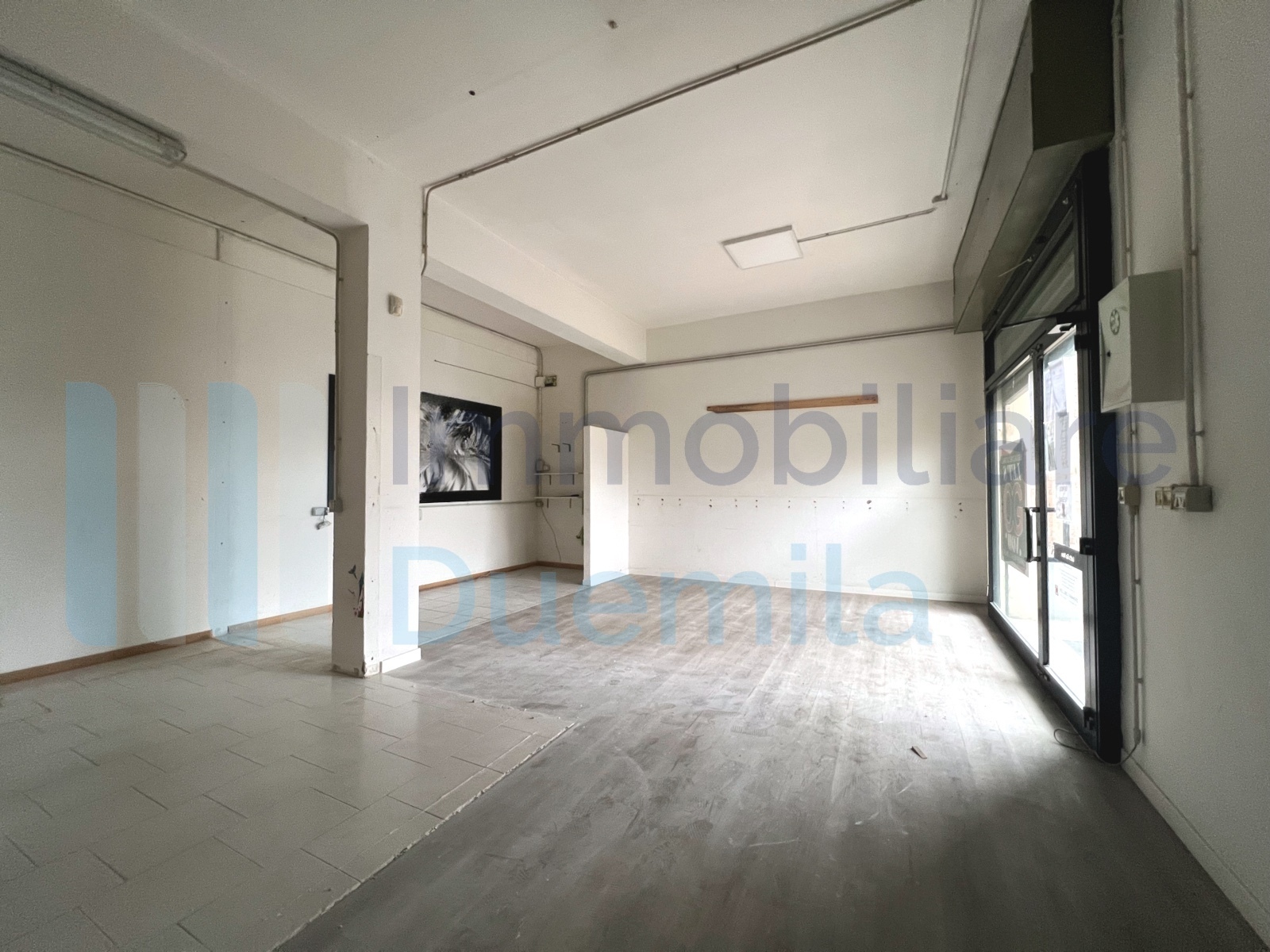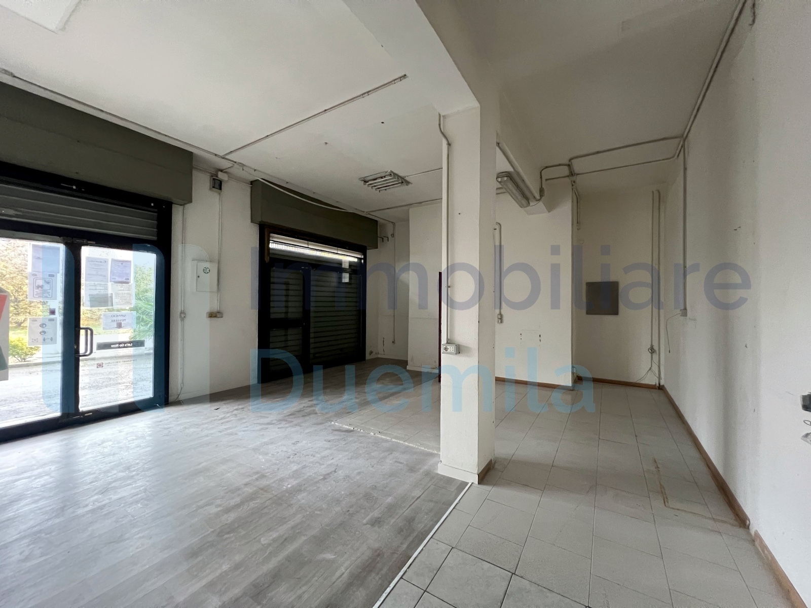 NEGOZIO mq 75 Bologna Corticella all'ingresso principale del centro commerciale, due vetrine, bagno, antibagno e magazzino, canone mensile euro 1.100
