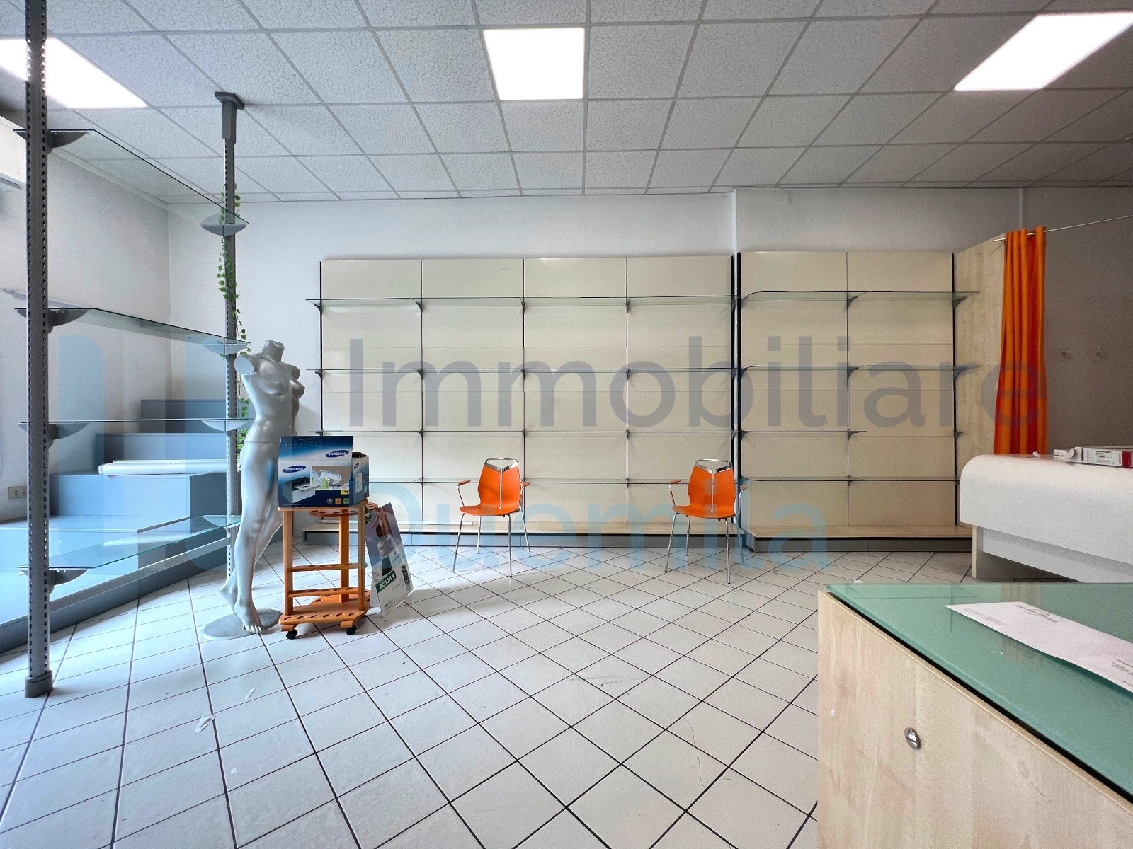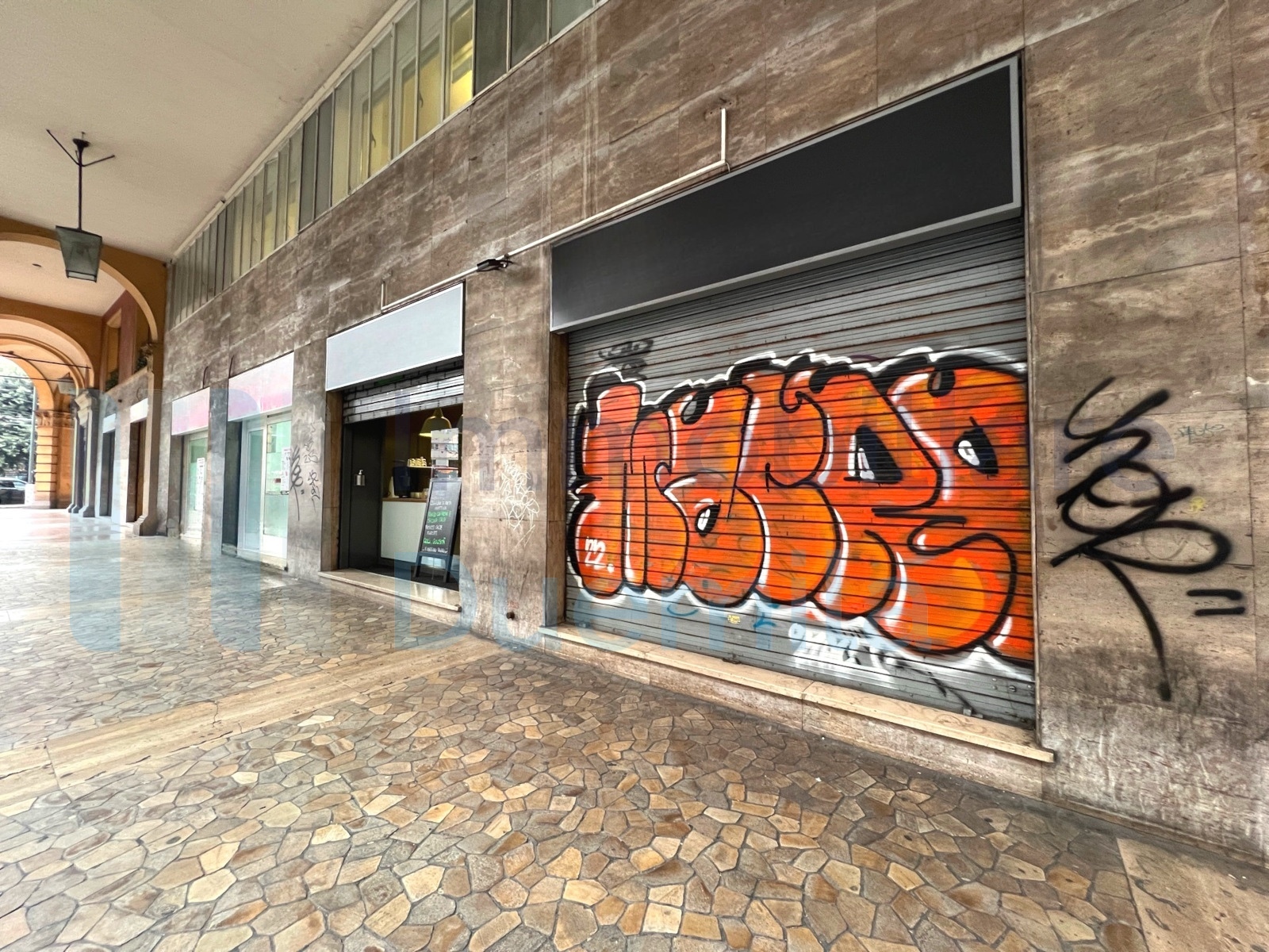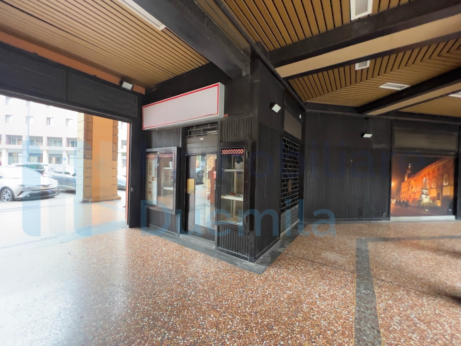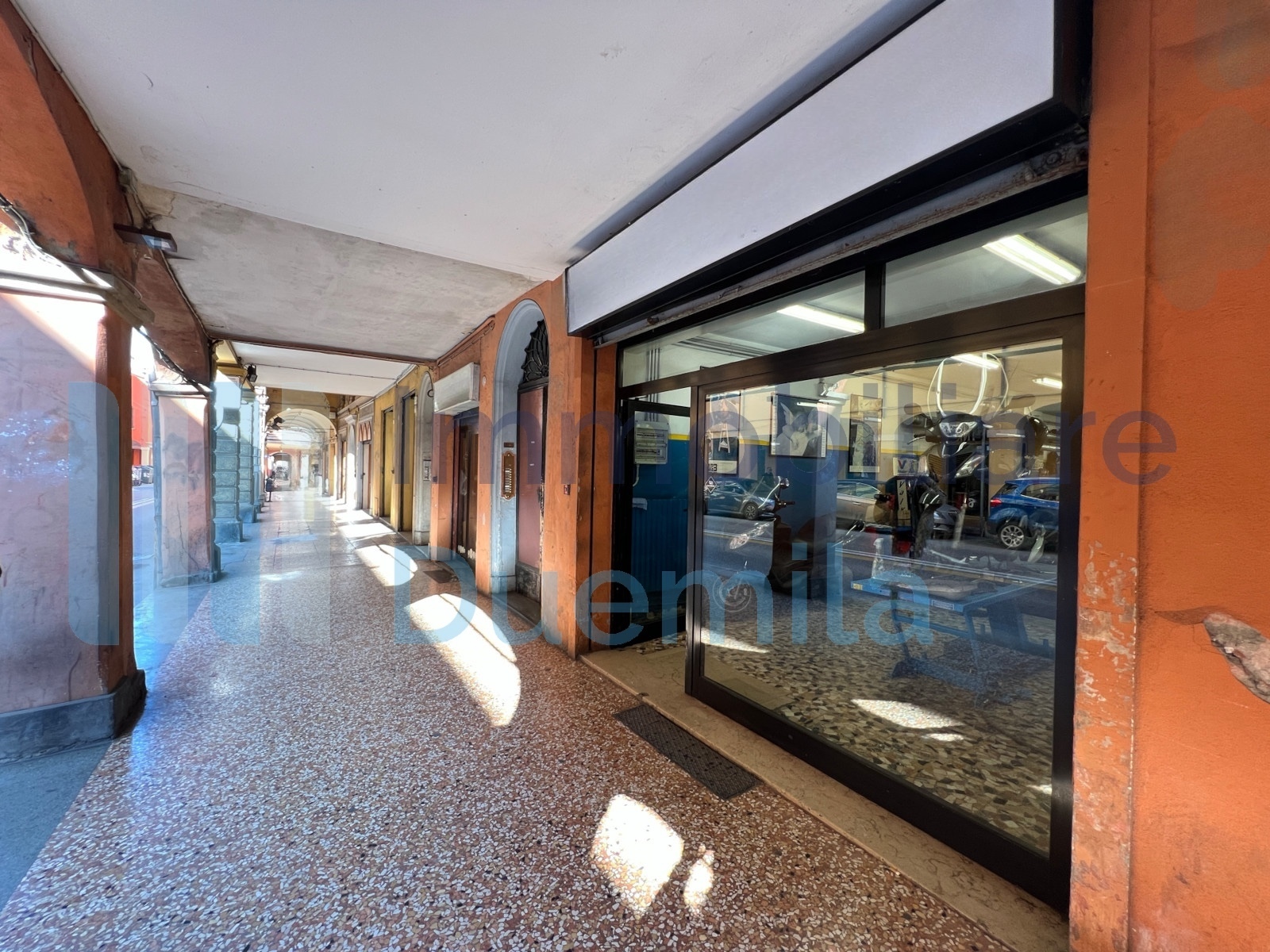 NEGOZIO via Marco Emilio Lepido, una vetrina fronte strada, poche spese, open space con bagno con possibile realizzazione canna fumaria, uscita laterale e finestrature, mq 64 commerciali, attualmente locato a euro 9.600 annui, classe energetica C ...