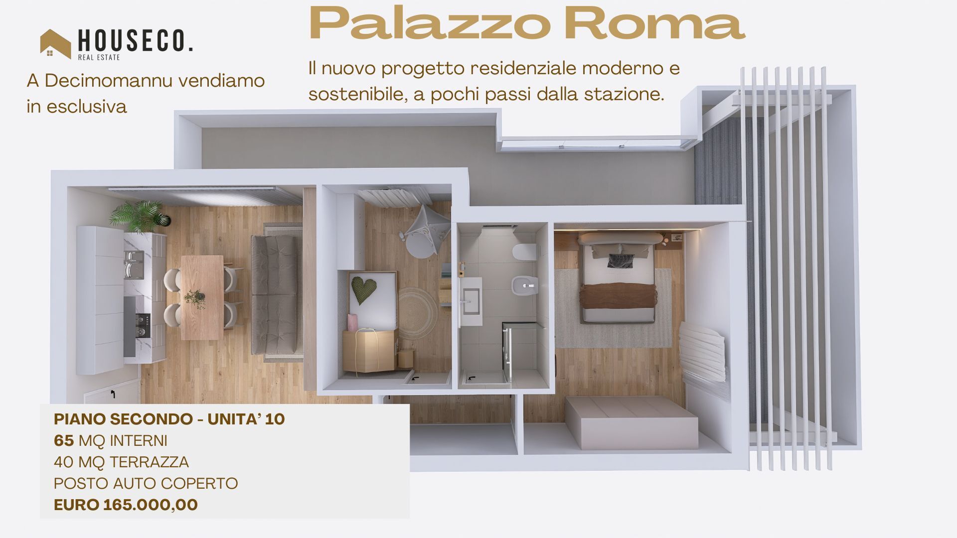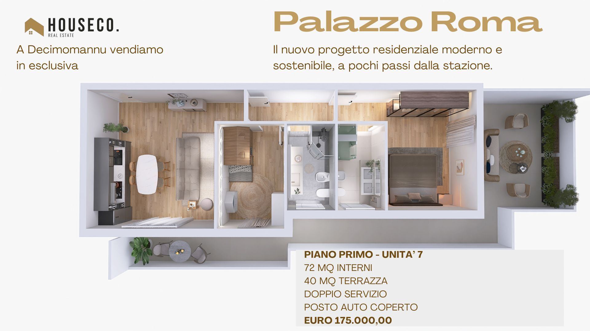 Nasce a Decimomannu "Palazzo Roma", il nuovo progetto residenziale moderno e sostenibile, a pochi passi dalla stazione, vicino a tutto e lontano dal caos, 13 minuti di treno da Cagliari.Trilocali con giardino o terrazza, con cantina e garage, fini...