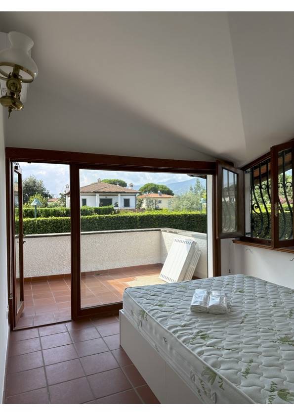 Forte dei Marmi quartiere Caranna affitto vacanza di villa indipendente con ampio giardino. Al piano terra porticato attrezzato per pranzi e cene all'aperto, internamente soggiorno, zona pranzo, cucina nuova, 1 camera matrimoniale, 1 bagno. Al...