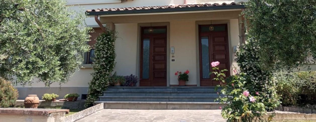 Porzione di casa bifamiliare con ampio giardino. L'abitazione, che occupa interamente il primo piano, ha un accesso indipendente dal piano terra rialzato. Una scala interna esclusiva porta al disimpegno centrale da cui si sviluppano i vari ambient...