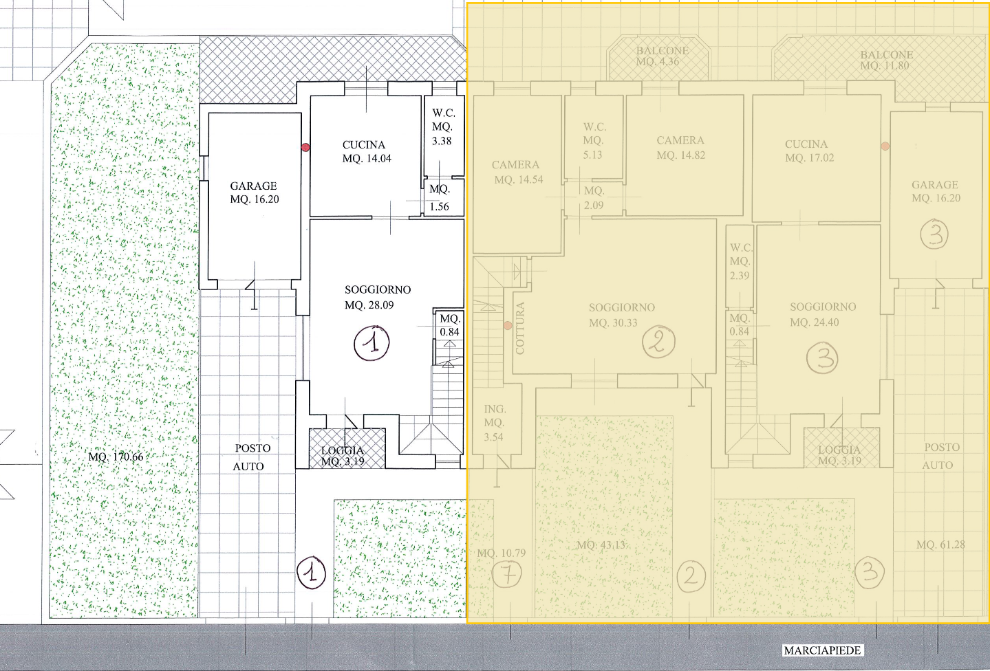 Appartamento di nuova costruzione disposto al piano terra di 104 mq totali, con ingresso indipendente. L'abitazione di circa 70 mq comprende soggiorno con angolo cottura, disimpegno, due camere matrimoniali di cui una con balcone. Al piano seminte...