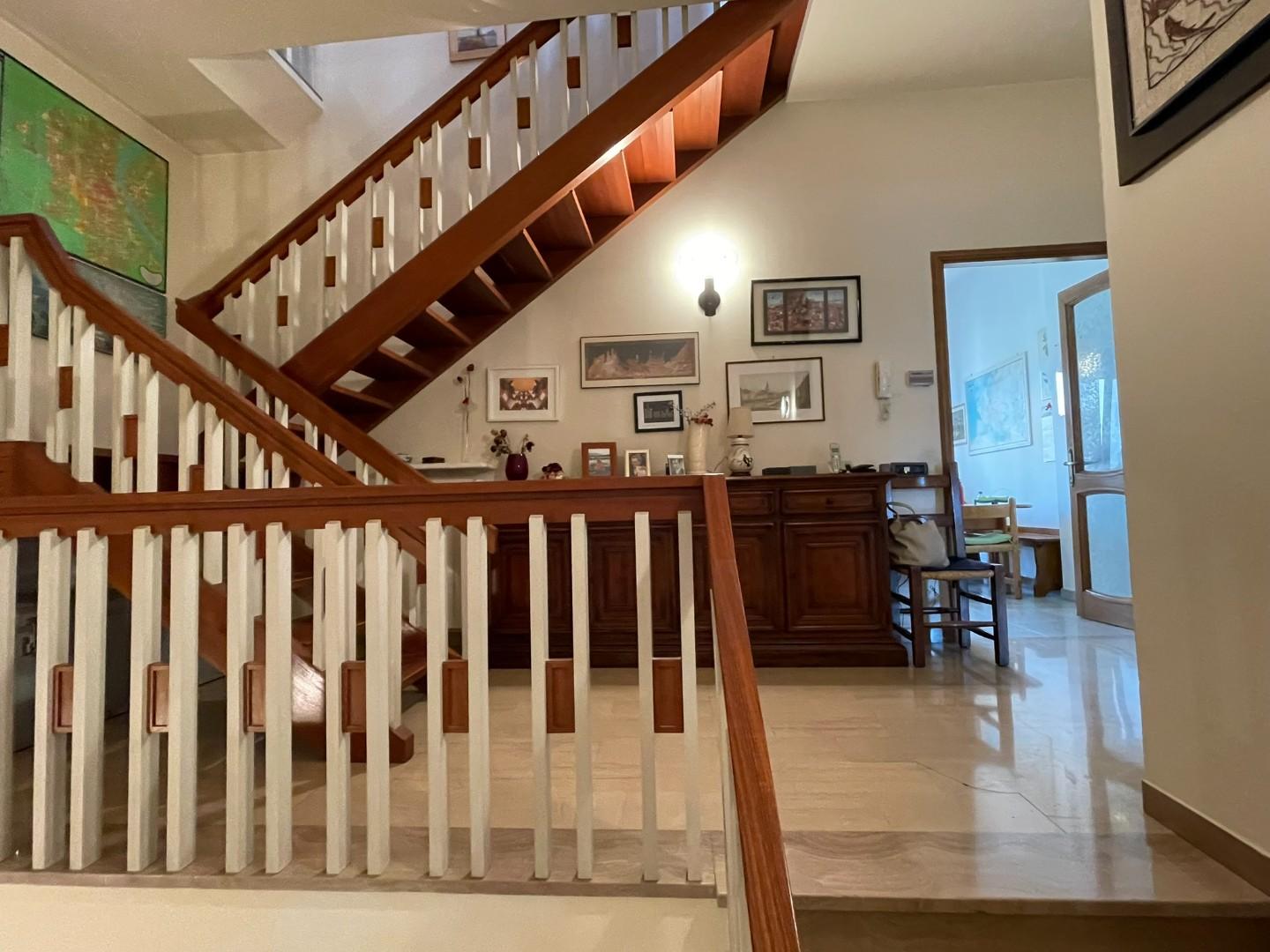 Situato in una zona residenziale tranquilla e a breve distanza dal centro, questo appartamento su più livelli si estende su circa 340 mq. ed è dotato di ampie terrazze, un giardino recintato di 105 mq. e un garage esclusivo. L'accesso avviene tram...