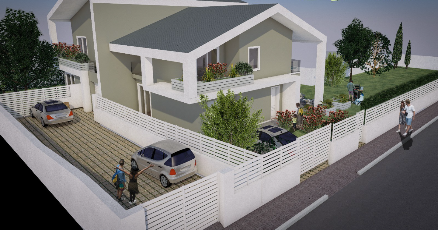 Appartamento di nuova costruzione, situato in un contesto trifamiliare, con una superficie di circa 122 mq, con garage di ulteriori 25 mq. e giardino esclusivo di circa 220 mq. L'abitazione si sviluppa al piano terra, l’ingresso immette in un’ampi...