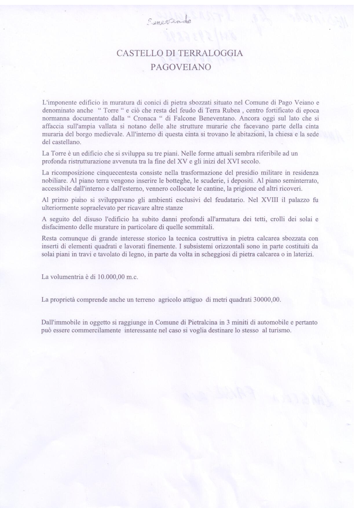 INTERO CASEGGIATO IN PIETRA VIVA CON CASTELLO DI ANTICHISSIMA ORIGINE (ULTIMO INTERVENTO 1500/1600) E CHIESA DI PERIFERIA IN VENDITA NEL TERRITORIO DI SAN PIO - BENEVENTO Codice annuncio da citare in caso di contatto: AA 25348 Proponiamo in...