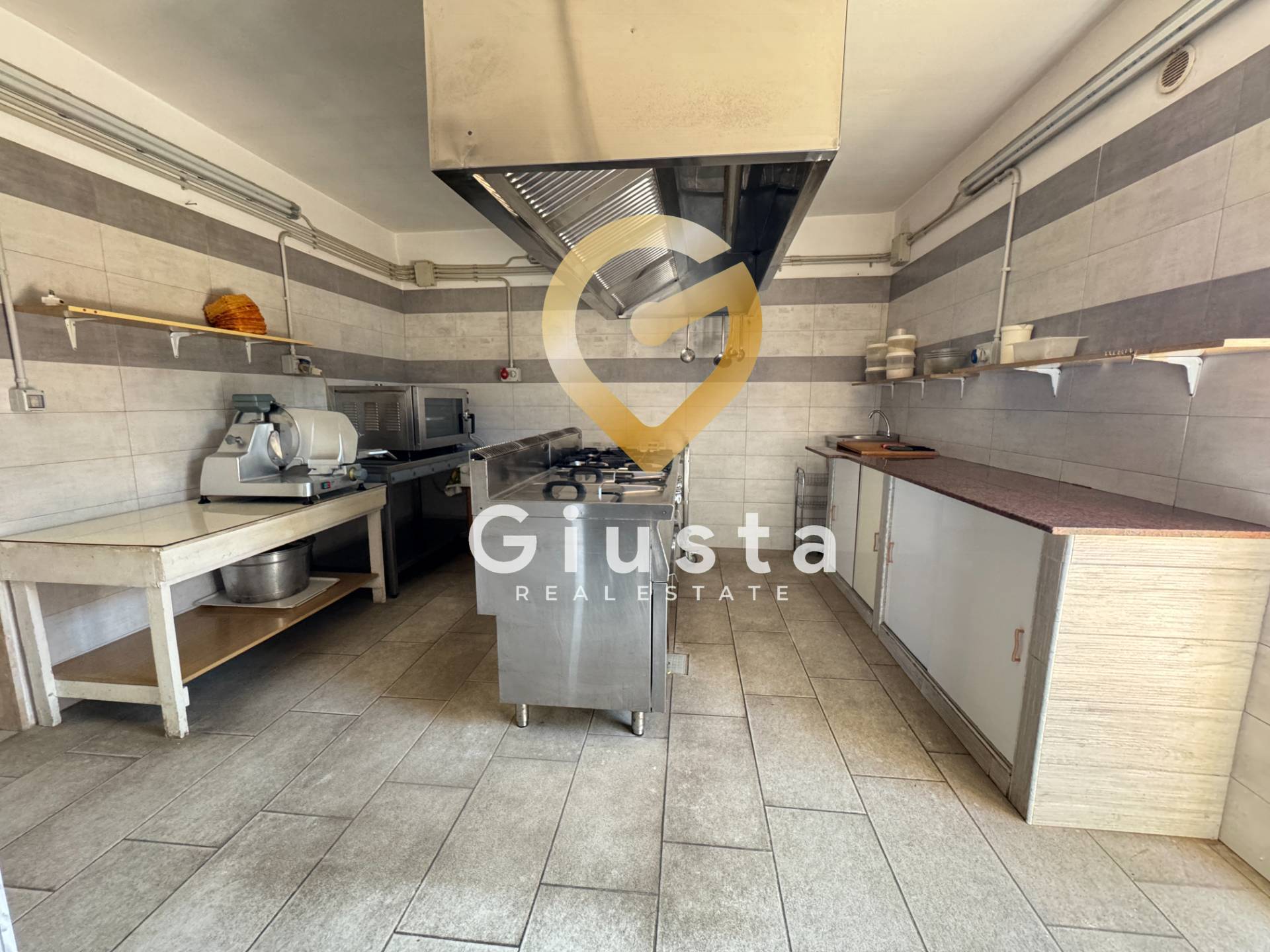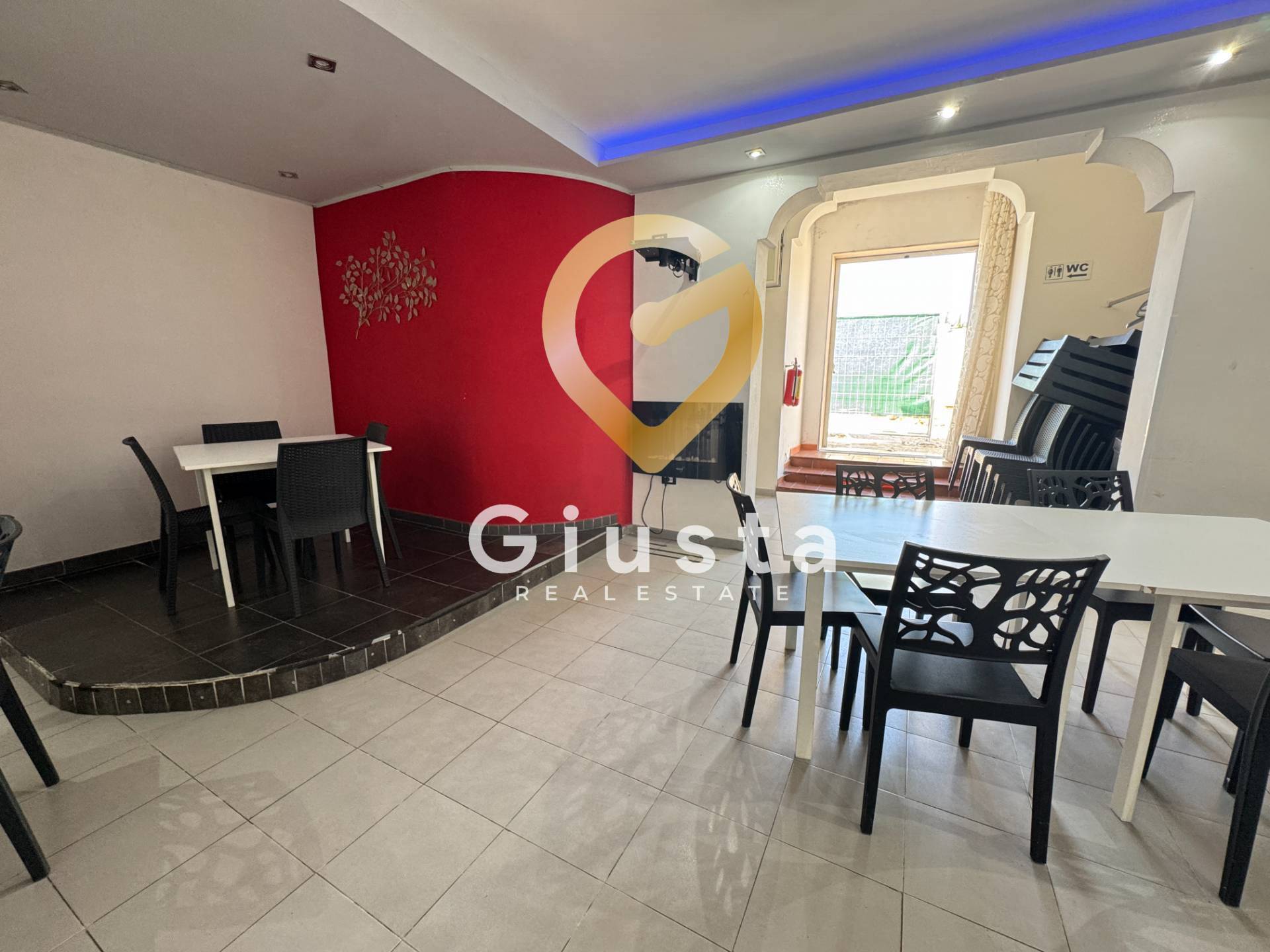 L'ingresso principale del ristorante si affaccia sull'ampio giardino privato. All'interno, l'ambiente è stato suddiviso in tre locali distinti, ideali per creare diverse atmosfere o per ospitare eventi e cene private. Inoltre, grazie alla presen...