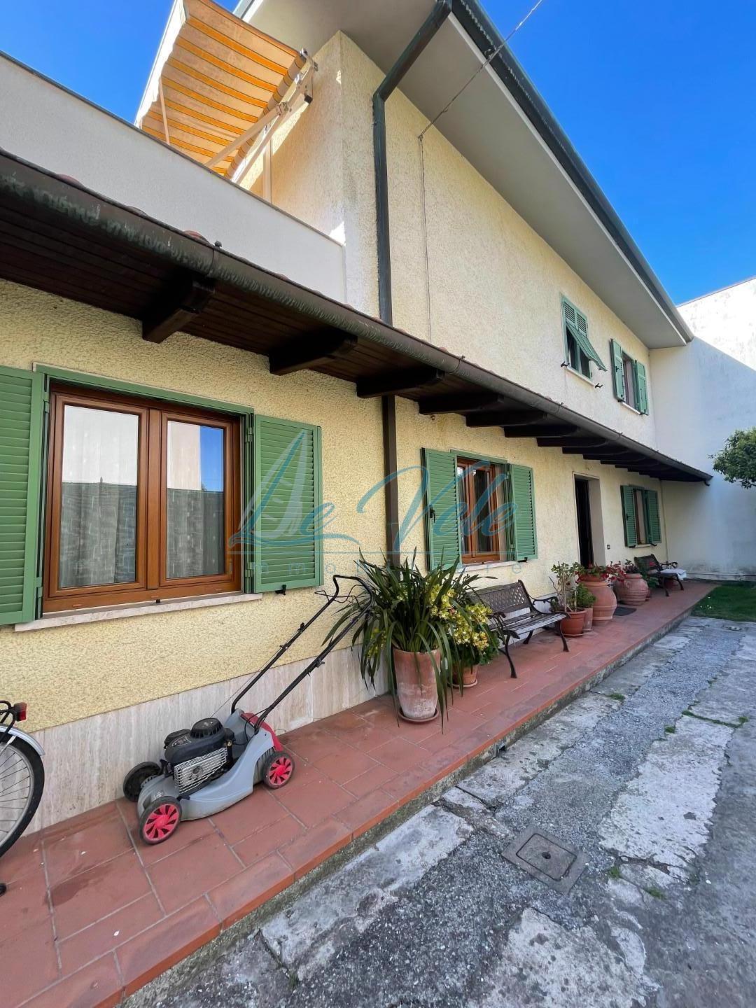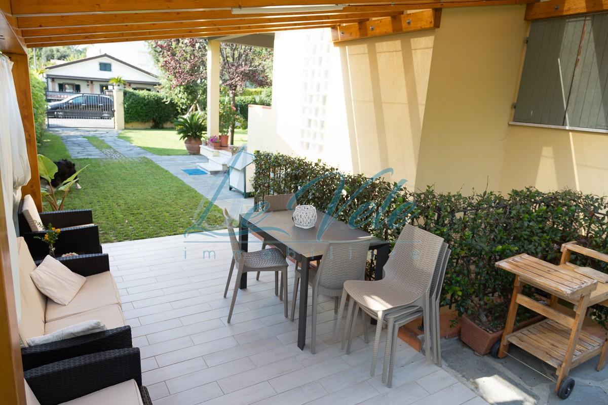 Marina di Massa, graziosa villetta, completamente ristrutturata di recente con ampio giardino esclusivo con posti auto. Internamente si sviluppa su due livelli fuori terra e si comone di ingresso su soggiorno, cucina con dispensa, salotto, 3 came...