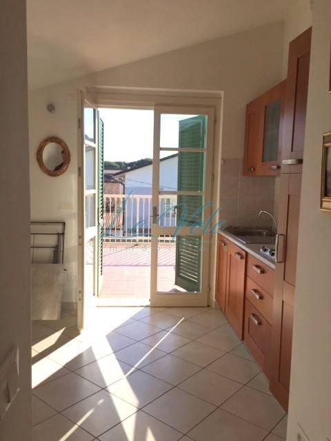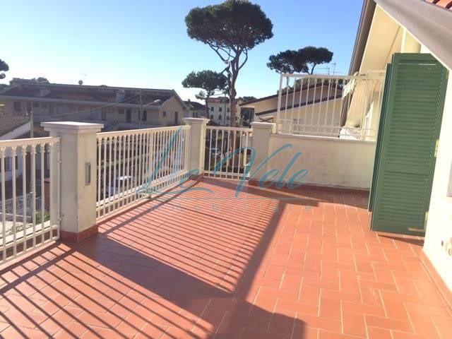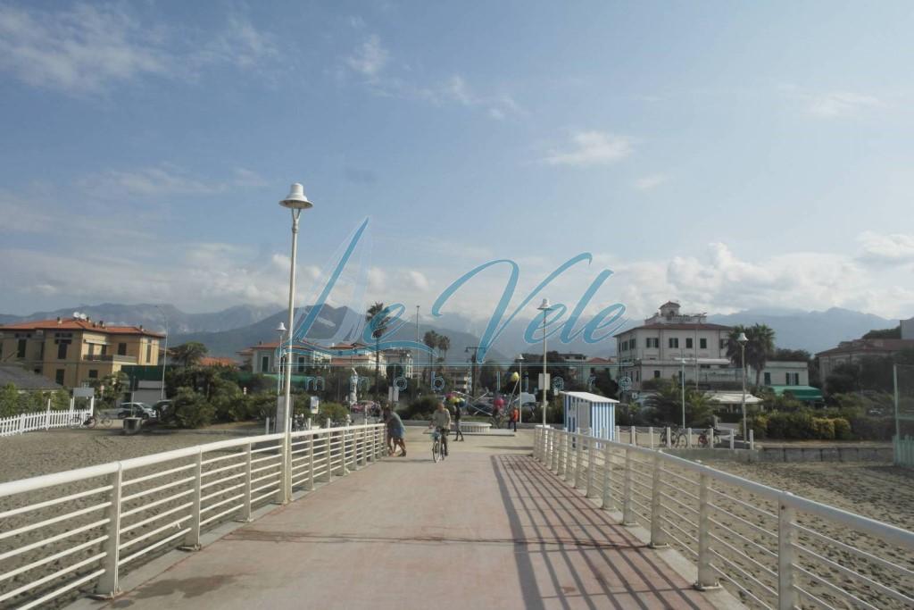 Marina di Massa, in posizione centrale, comoda a tutti i servizi e a pochi passi dal mare, graziosa mansarda con ampia terrazza pranzabile, molto luminoso e con bella vista, inserito in elegante complesso condominiale di recente costruzione, di po...