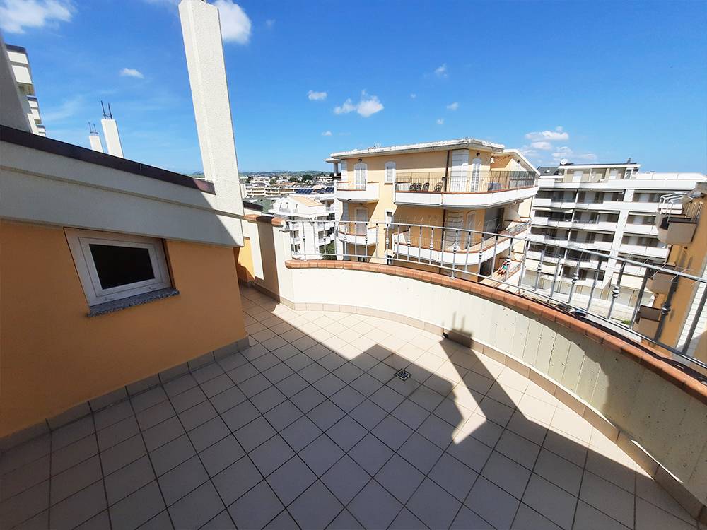Nella centralissima e servita Via Mazzini, a 250 metri dal mare, bilocale con comodo balcone perimetrale, lastrico solare sovrastante da 140 mq circa, cantina pertinenziale e spazio di parcheggio su area condominiale. Abitazione posta al terzo pia...