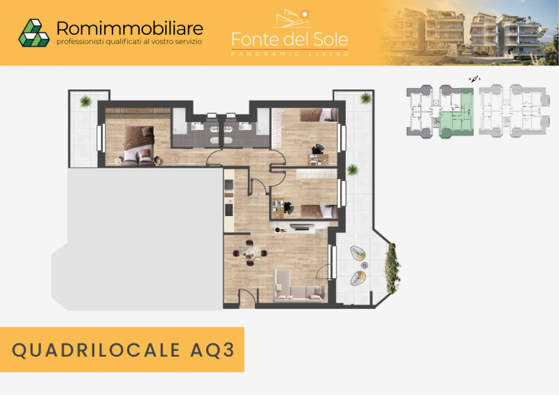 Il complesso residenziale "Fonte del Sole", sorge nella zona sud di Roma, all’interno del G.R.A., tra Fonte Meravigliosa e la riserva naturale della Cecchignola, un’imponente area verde di 99 ettari tutelati considerati il polmone verde del quarti...