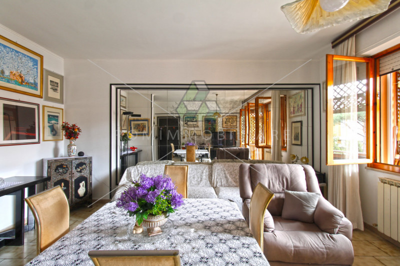 Romimmobiliare, nel tranquillo ed elegante quartiere dell’Infernetto, a pochi passi dalla Pineta di Castel Porziano e dal mare, propone in vendita, all’interno di un villino esclusivo suddiviso in soli tre appartamenti, un ampio quadrilocale compo...