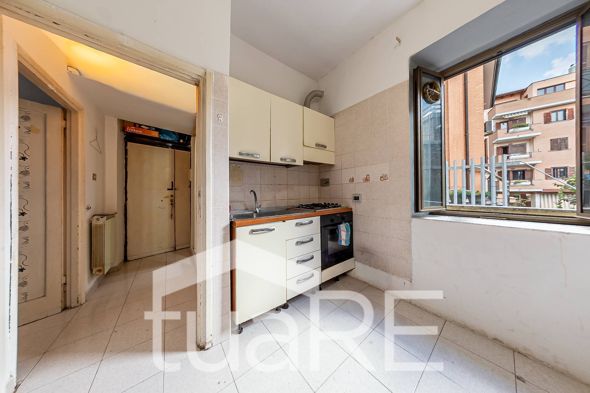 TUA RE Monte Mario ad.(Via Del Benedettine) OTTIMO INVESTIMENTO, bilocale con ampio GIARDINO PAVIMENTATO ad uso esclusivo ed AFFACCI APERTI e LUMINOSI, ingresso, cucina a vista, soggiorno, camera matrimoniale, servizio. (Rif.1793/st) www.tuare.it...