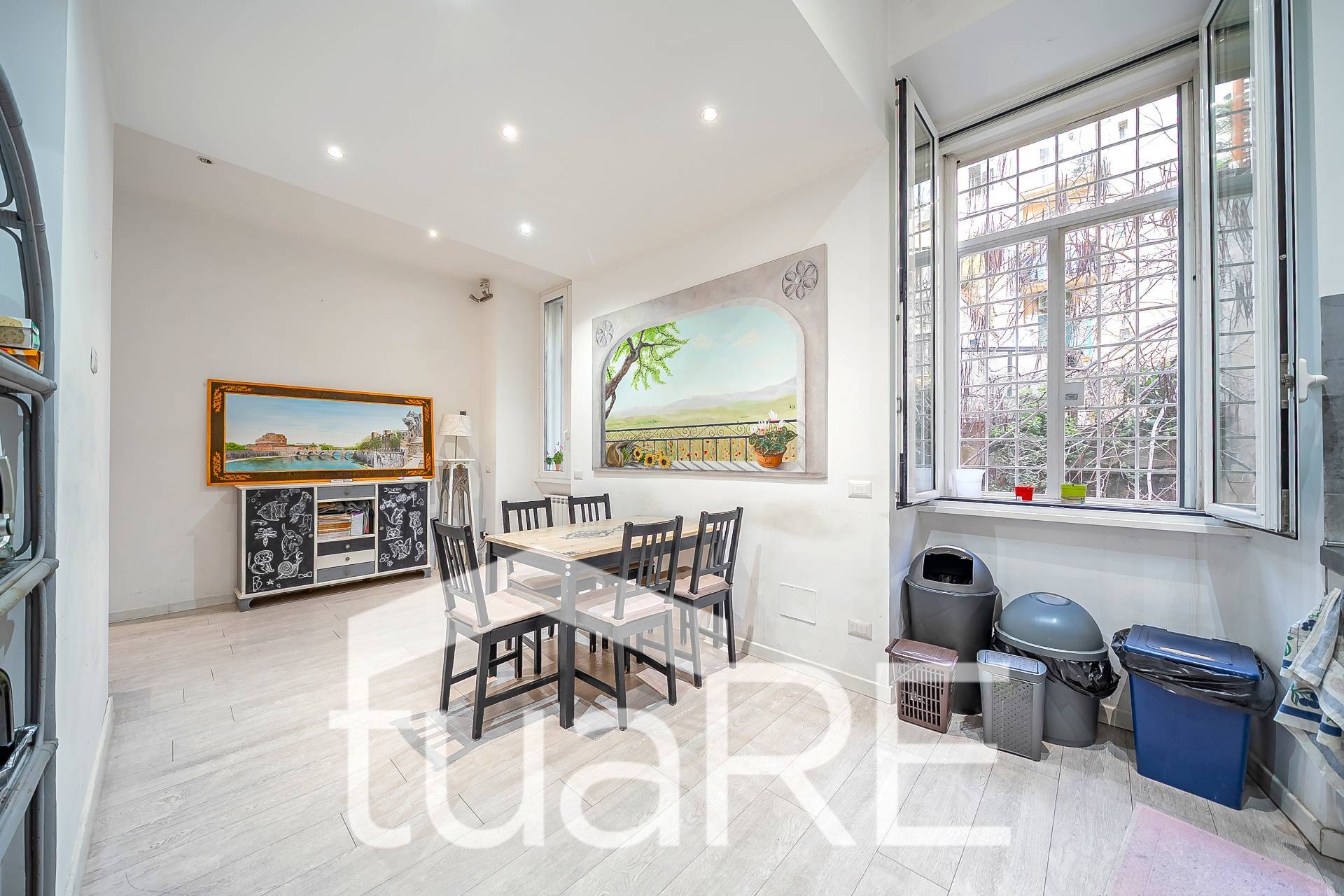 TUA RE (Stazione Trastevere) MERAVIGLIOSO 5° E PENULTIMO PIANO con TERRAZZO e splendidi AFFACCI PANORAMICI e molto luminosi, tripla esposizione, in STABILE SIGNORILE con PORTIERE ed ascensore, ingresso, ampio salone, 2 ampie camere (possibilità 3°...