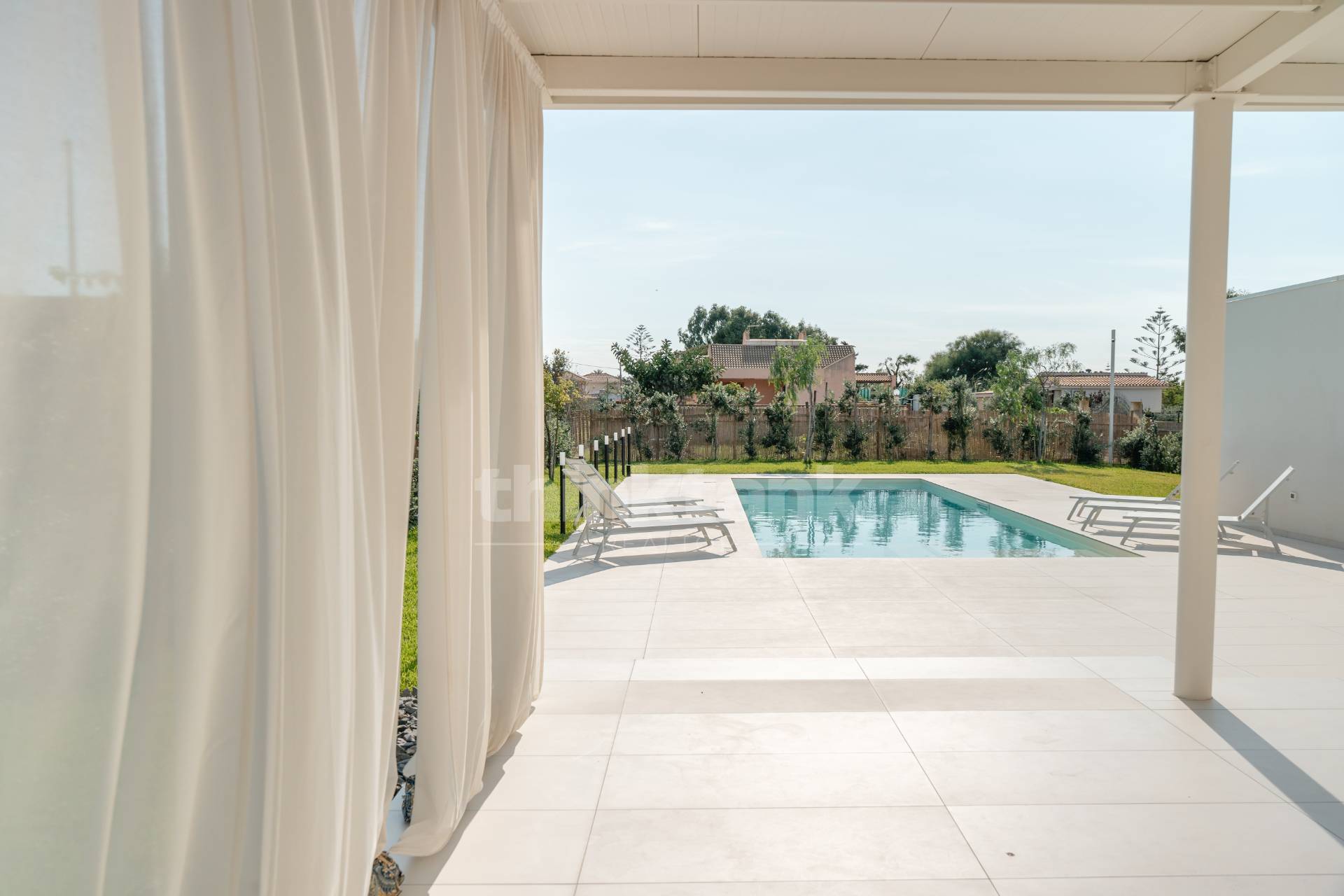 Ad Aci SantAntonio, in una zona residenziale tranquilla e ben servita, proponiamo in vendita una nuova costruzione in fase di completamento, consegnata rifinita e pronta da abitare. Labitazione è libera su tre lati e circondata da un ampio giar...