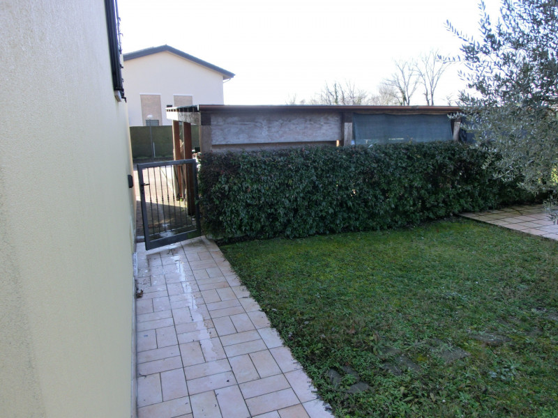 Robegano di Salzano,NOSTRA ESCLUSIVA,particolare appartamento di recente costruzione sito al piano terra con ampio giardino di proprietà ed ingresso indipendente.Soggiorno cucina,disimpegno molto comodo per eventuale armadi,camera matrimoniale e b...