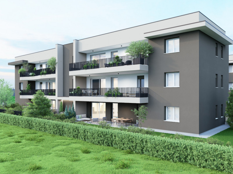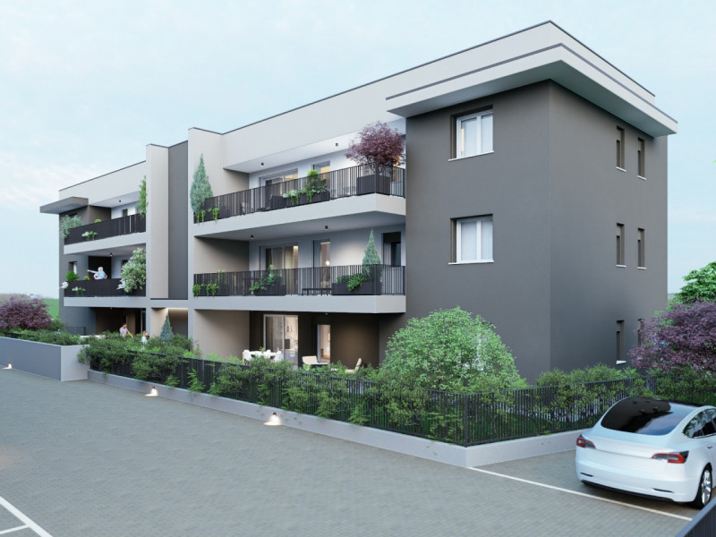 SCORZE' CENTRO Nuova costruzione Appartamento al piano primo piano, servito da ascensore, con zona giorno di 36 mq con affaccio su terrazzo di 23 mq, due camere, doppi servizi finestrati, garage al piano terra e posto auto. Possibilità scelta del...