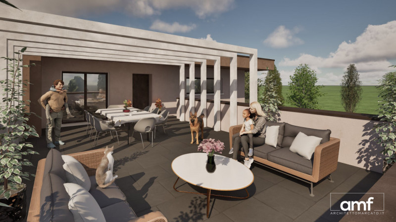 NOALE : appartamento al primo ed ultimo piano con ingresso privato, composto da una zona giorno di 45 mq molto luminosa grazie all'ampia vetrata che da accesso alla terrazza di 54 mq , tre camere da letto e due bagni. Il garage è al piano terra e ...