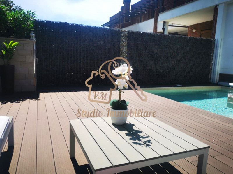 GIUSTINIANA - CASTELLUCCIA Lo studio immobiliare VM è lieto di proporre in vendita una splendida villa a schiera su tre livelli con piscina, cosi composta: PT: Salone doppio con camino, cucina e 2 terrazze con pergotende bioclimatiche. Gia...