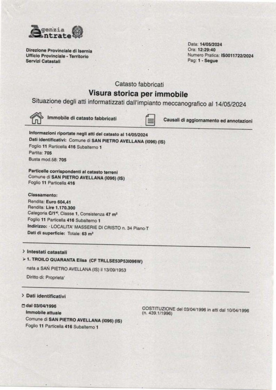 APPARTAMENTO ALL'ASTA A SAN PIETRO AVELLANA (IS) Immobiliallasta.it, società di consulenza leader per la partecipazione in asta, propone la possibilità di partecipare all'asta di un immobile a Località Masserie di Cristo, San Pietro Avellana (IS)...