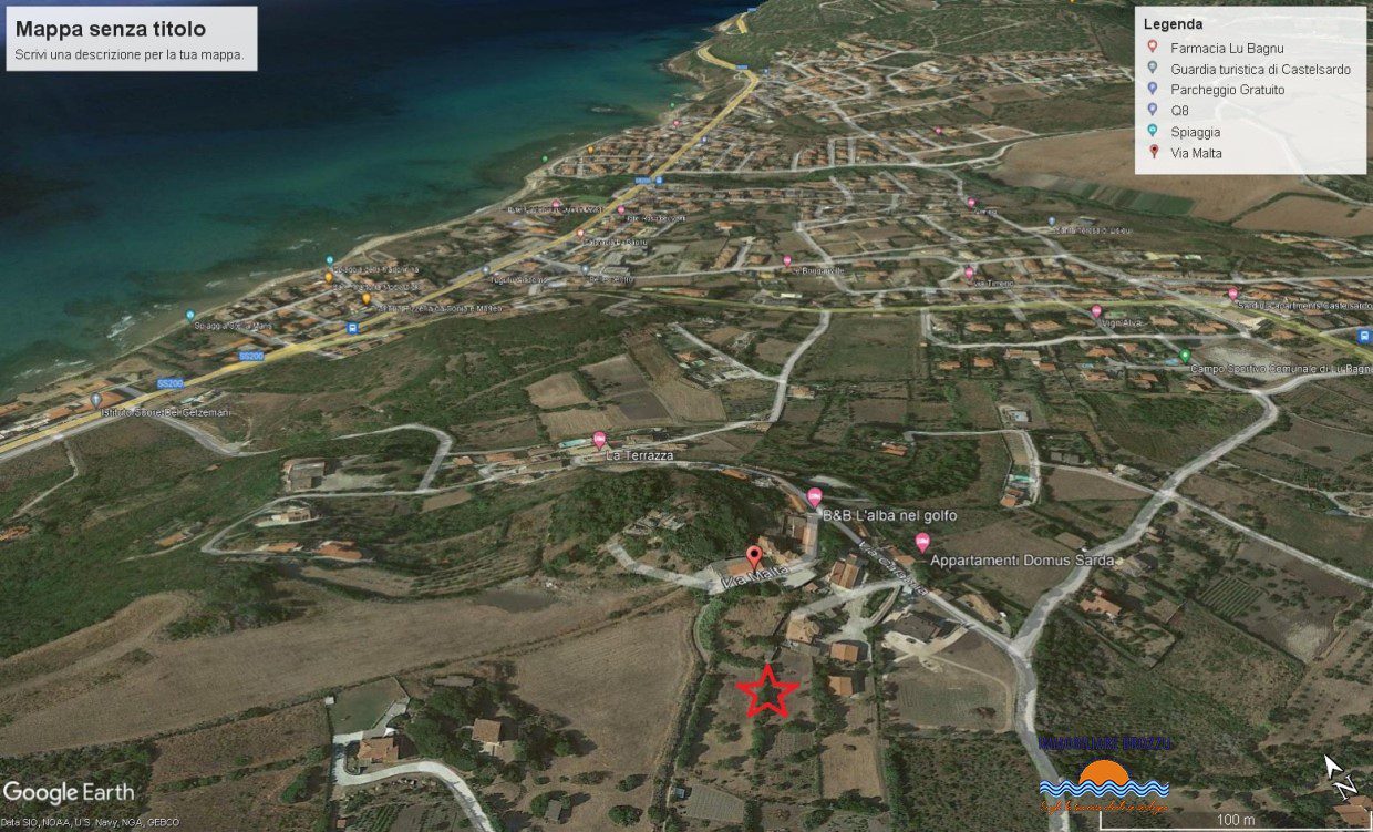 Castelsardo, in Località Lu Bagnu alto (Via Malta, distante Km. 1,5 dalla spiaggia (NO VISTA MARE), vendiamo terreno edificabile di Mq. 1000 circa, di cui Mq. 740 ricadenti in Zona B7 e Mq. 260 in Zona E (Agricola), con volume edificabile di MC 51...