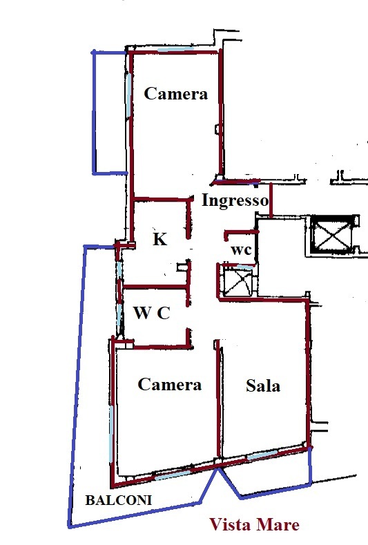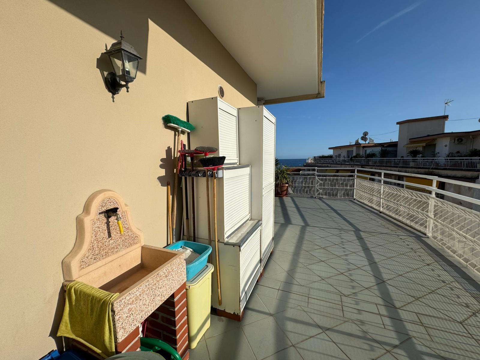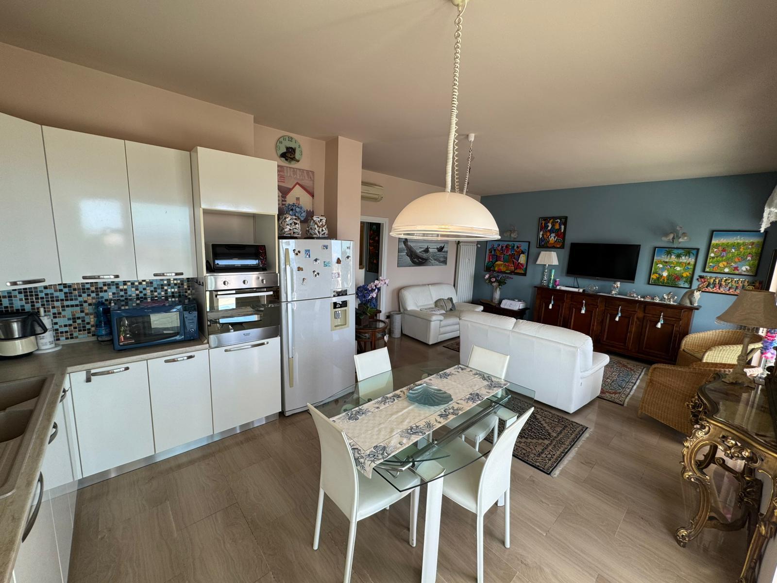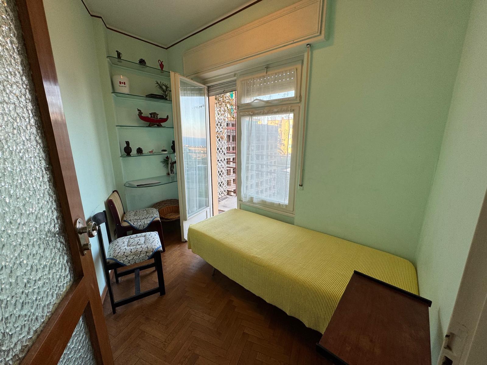 Appartamento composto da Ingresso, cucina , sala , due camere, bagno, tutto finestrato, ripostiglio ampio esposizione sud, vista mare. Posto auto privato scoperto di mq. 30 sotto casa. L'appartamento necessita di ristrutturazione, posizione ottim...