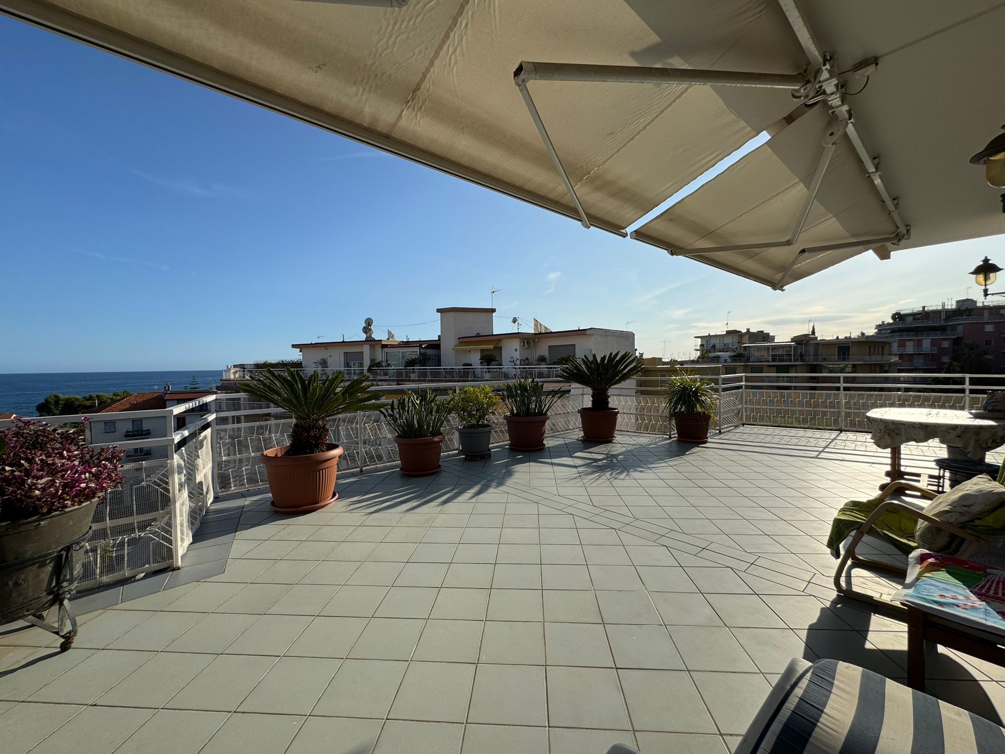 Sanremo zona San Martino, splendido Piano 6° Attico con esposizione Sud / Ovest di mq. interni 150 piu' ulteriori circa 100 di terrazzi e balcone ! Ascensore, ampio Box auto di 29 mq. e cantina di 34 mq.! L'Attico è stato tutto completamente ristr...