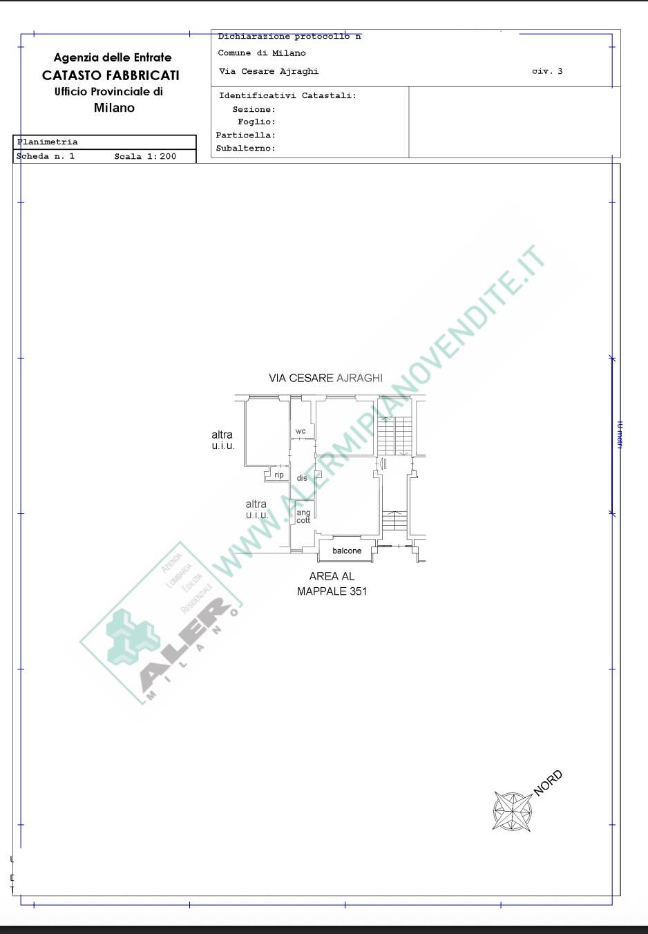 APPARTAMENTO ASTA ALER VIA CESARE AJRAGHI N.3 COMPOSTO DA INGRESSO, SOGGIORNO,CUCINA, DISIMPEGNO, 2 CAMERE DA LETTO, RIPOSTIGLIO, BAGNO, CANTINA. ----- Acquista tramite asta giudiziaria assistita dalla nostra agenzia immobiliare Safehouse Srl. ...