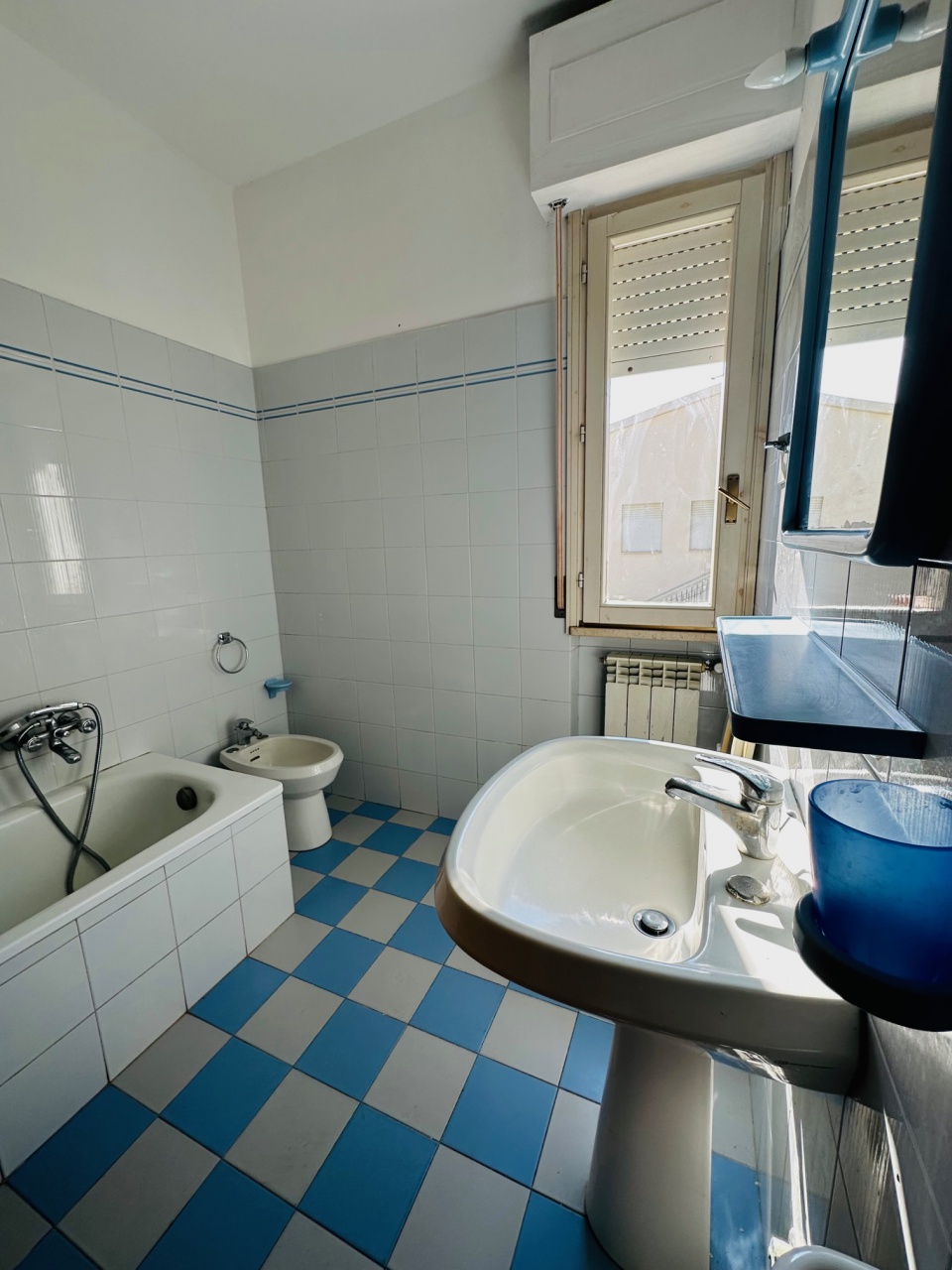 Appartamento ampio e luminoso situato a 80mt dal mare e comodo al centro ed a tutti i servizi, composto da ampio soggiorno, cucina, due bagni uno con doccia e uno con vasca, due camere matrimoniali una con terzo letto. TV LAVATRICE LAVASTOVIGLIE ...