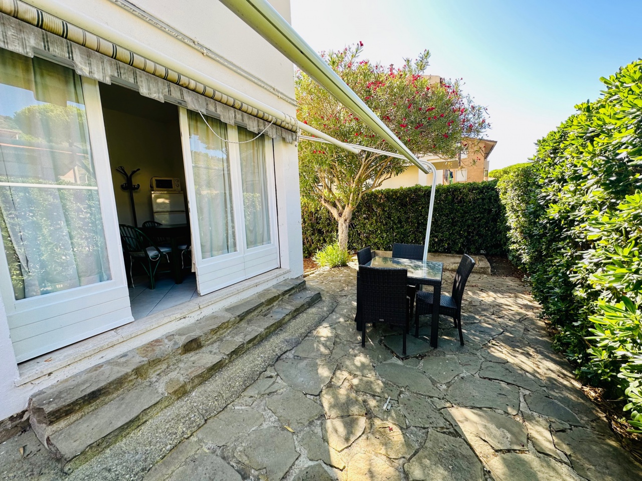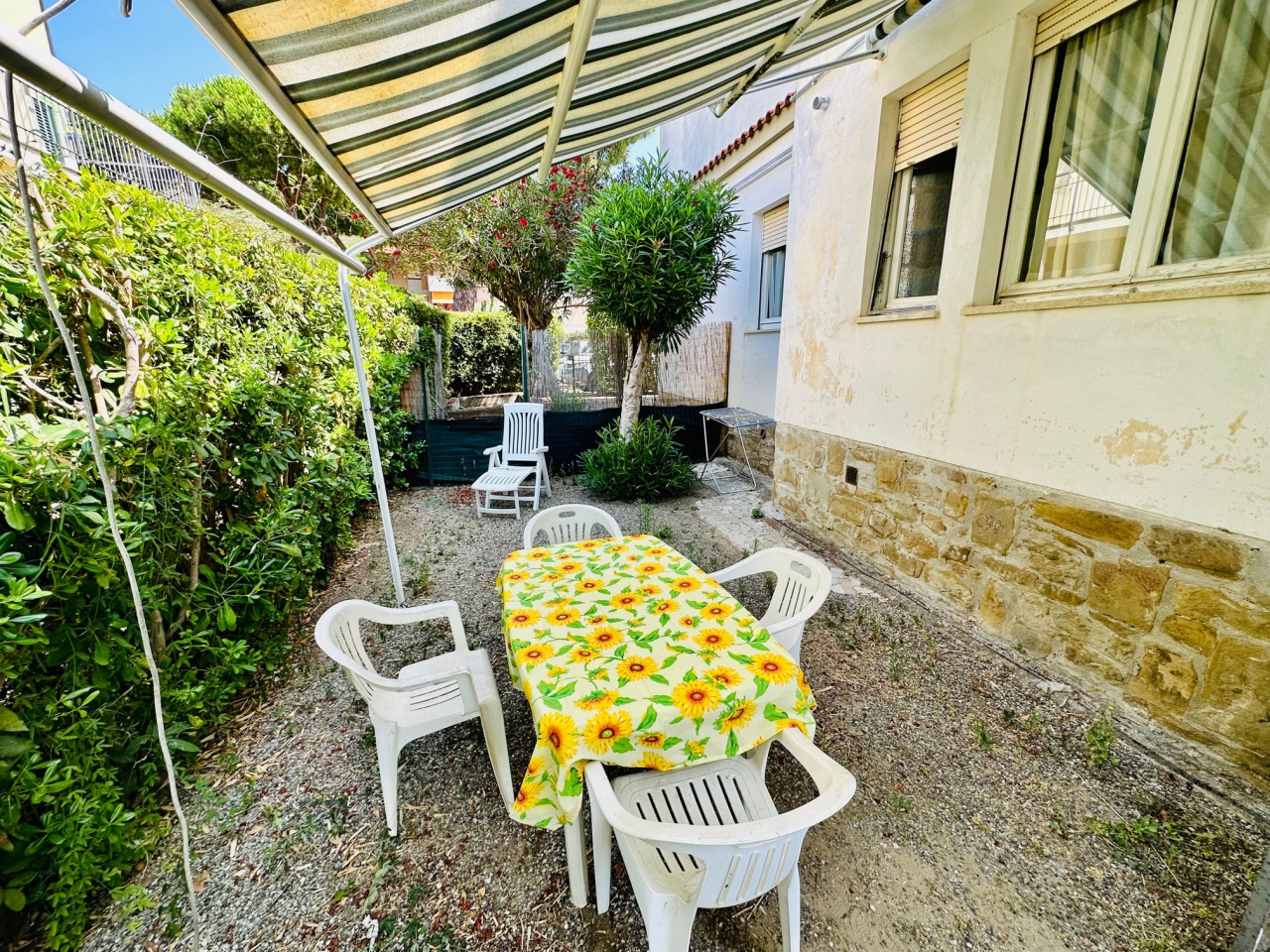 Bilocale con giardino esclusivo situato a 60mt dal lungo mare di castiglione della pescaia, composto da soggiorno con angolo cottura, camera matrimoniale e bagno, ampio spazio esterno. TV e LAVATRICE CIN: IT053006C2M66QGISZ
