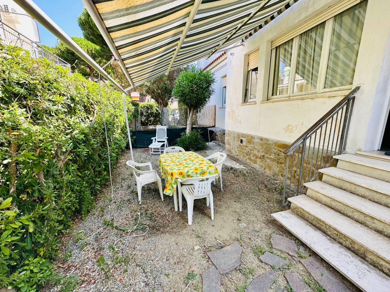 Bilocale con grande spazio esclusivo per pranzare e cenare fuori e ingresso indipendente situato a 80mt dal mare composto da soggiorno angolo cottura, camera matrimoniale e bagno. TV LAVATRICE CIN: IT053006C2UGY2SA2J Classe Energetica: - - IPE: 0...