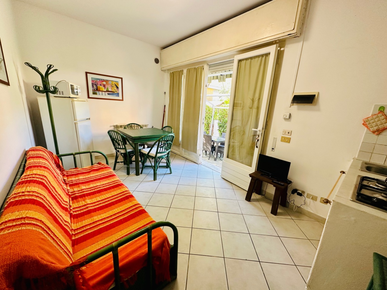 Bilocale situato in piccola palazzina a 60mt dal mare e 400mt dal centro composto da ingresso indipendente, piccolo balconcino, ampio spazio esterno, composto da soggiorno con angolo cottura, camera matrimoniale e bagno. TV LAVATRICE CIN: IT05300...