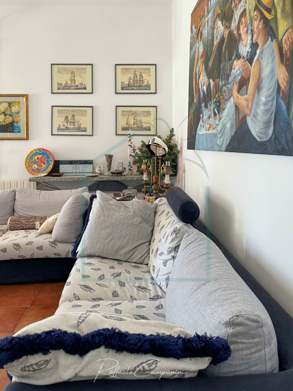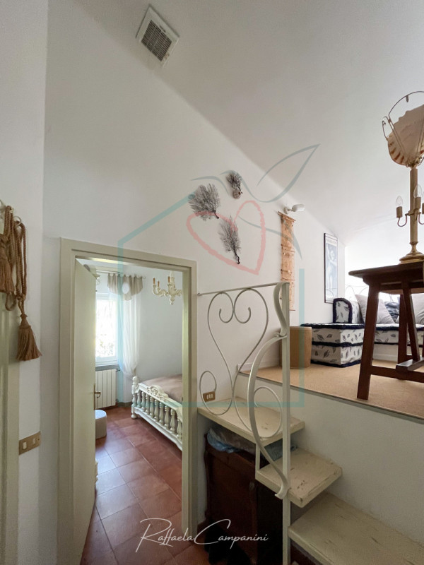 Bocca di Magra. Nella prima collina di Montemarcello, semindipendente distribuita su due livelli, all'interno di un complesso residenziale recintato accessibile da cancello. Dalla scala esterna, attraverso la terrazza con vista panoramica su Apuan...