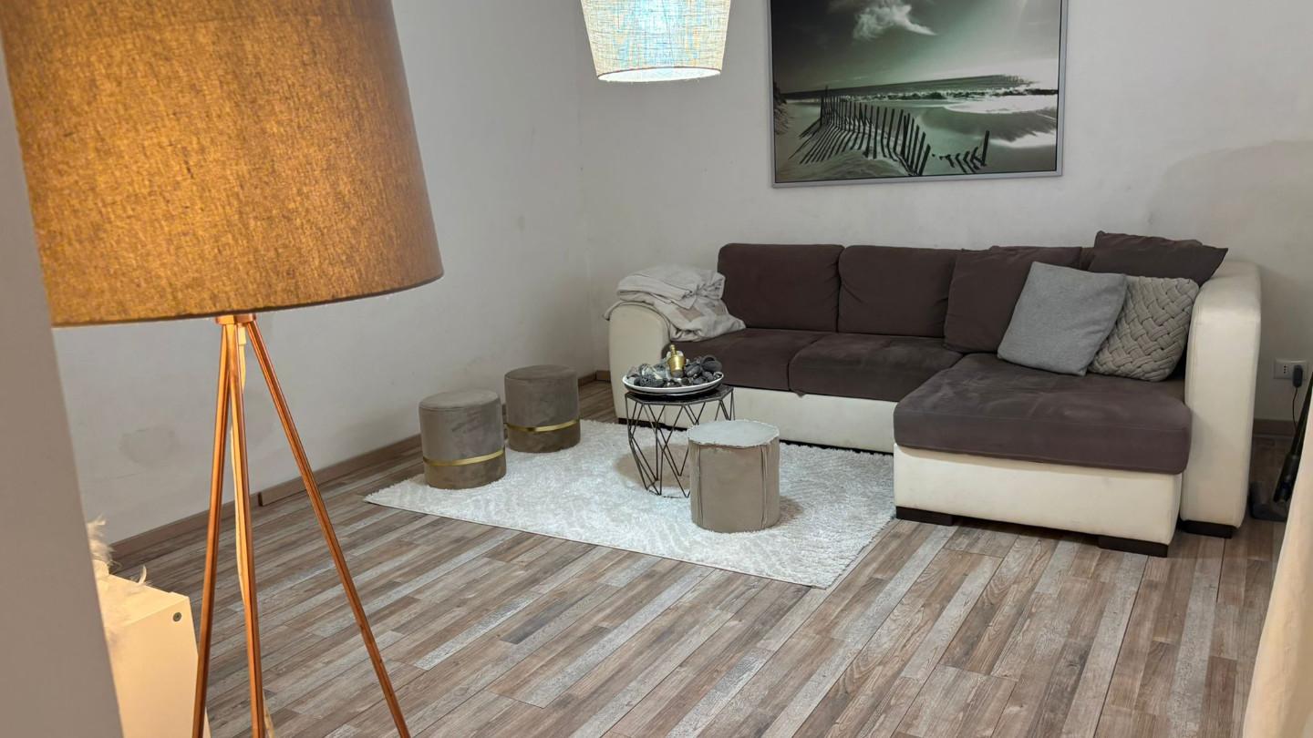 LOCATO FINO A MARZO 2028 PROPONIAMO A NAVACCHIO UN APPARTAMENTO CON INGRESSO INDIPENDENTE POSTO AL PRIMO PIANO, CON GARAGE. SI ACCEDE ALL'ABITAZIONE TRAMITE ESCLUSIVA SCALA ESTERNA, COMPOSTA DA SOGGIORNO ACCOGLIENTE E LUMINOSO, CUCINA (CON MOBILIO...