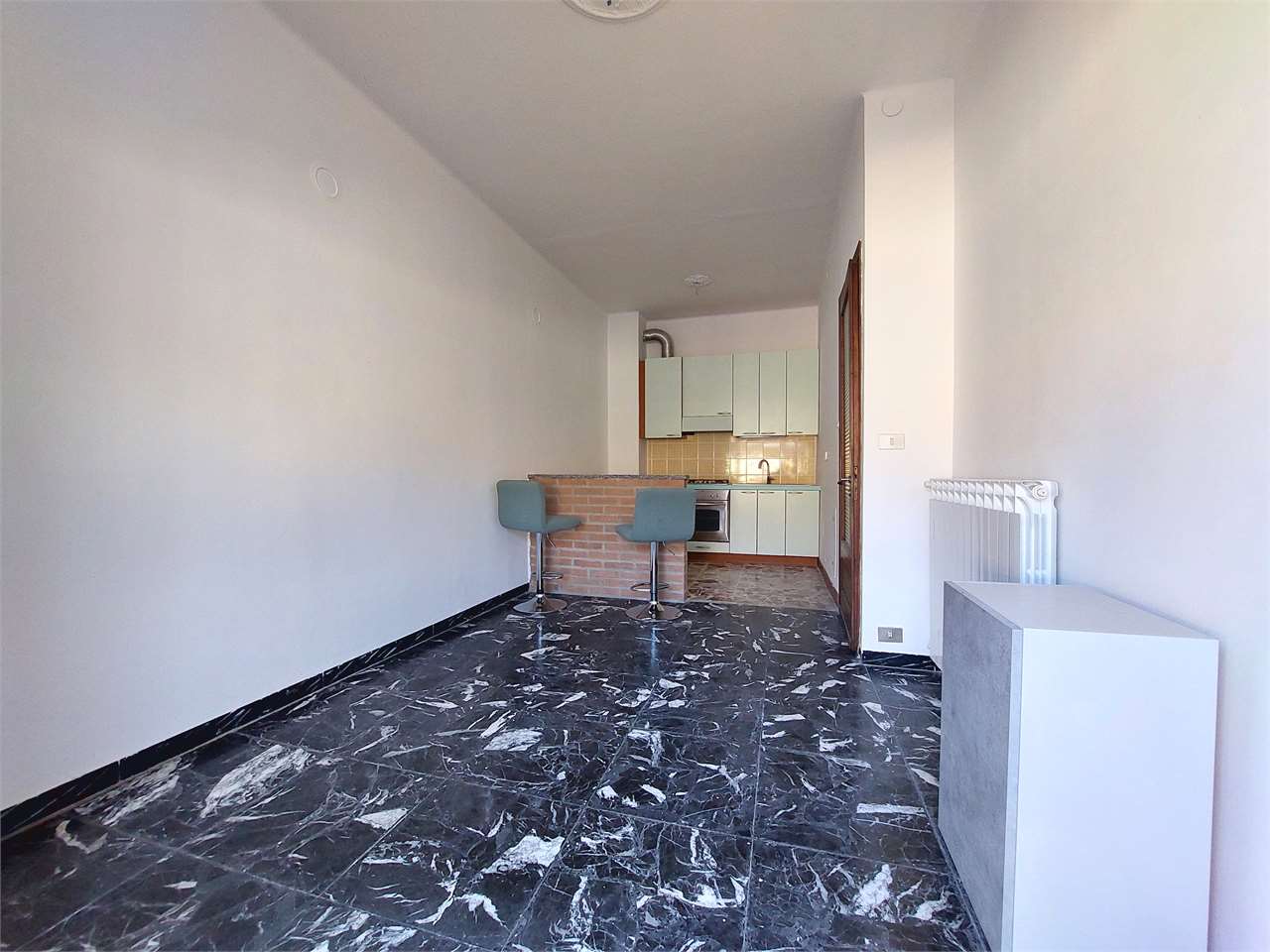 L'appartamento si trova in una palazzina storica di Pieve di Teco, tutti i negozi ed i servizi sono sotto casa. La proprietà è situata al secondo piano senza ascensore. L'ingresso è nel vano disimpegno che divide la zona giorno dalla zona notte...