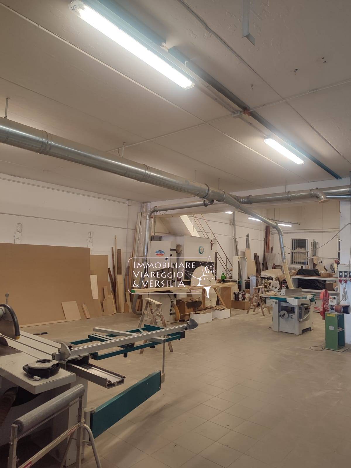 In Massarosa loc. Montramito, si offre in affitto capannone artigianale di mq 500 totali disposto su 2 livelli attrezzato per FALEGNAMERIA corredato da impianto di aspirazione con tre sacchi e cabina di verniciatura Al piano terra, due vani e b...