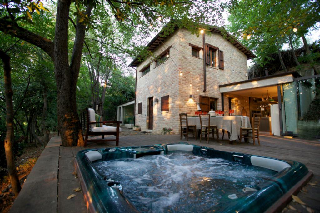 ASCOLI PICENO (AP) Inserita all'interno di un bel parco ricco di querce e di vegetazione ad alto fusto, bellissima proprietà composta da due casali ristrutturati di complessivi mq 250. La prima villa, in parte rivestita in travertino, è composta a...