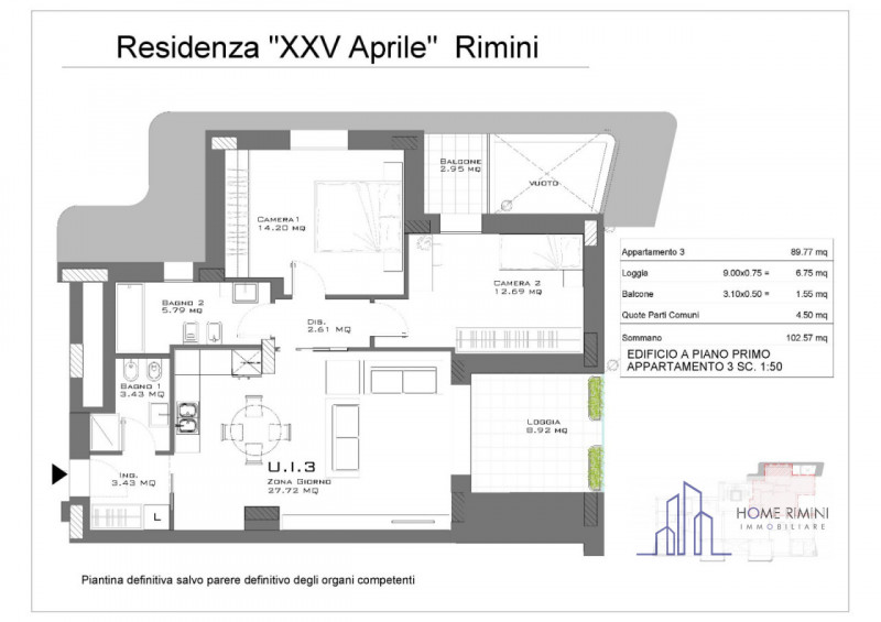 TRI-LOCALE D DI NUOVA COSTRUZIONE, DI AMPIA METRATURA, SUL PARCO XXV APRILE RIMINI | BORGO SAN GIULIANO Appartamento | 3 Locali | 1° PIANO - 103 Mq comm. li IMMOBILE: Soggiorno Cucina open space - Camera da letto matrimoniale - Camera da letto d...