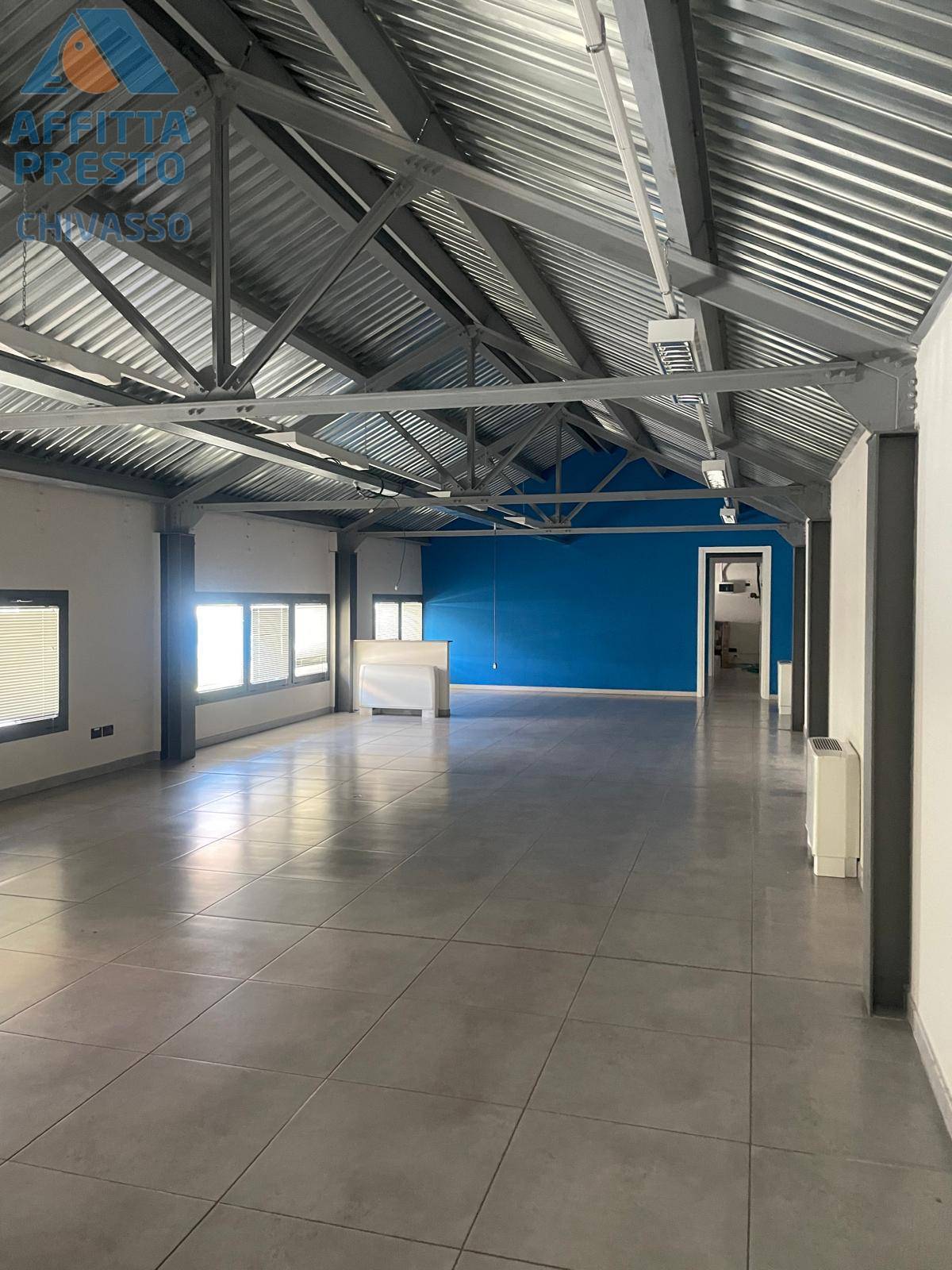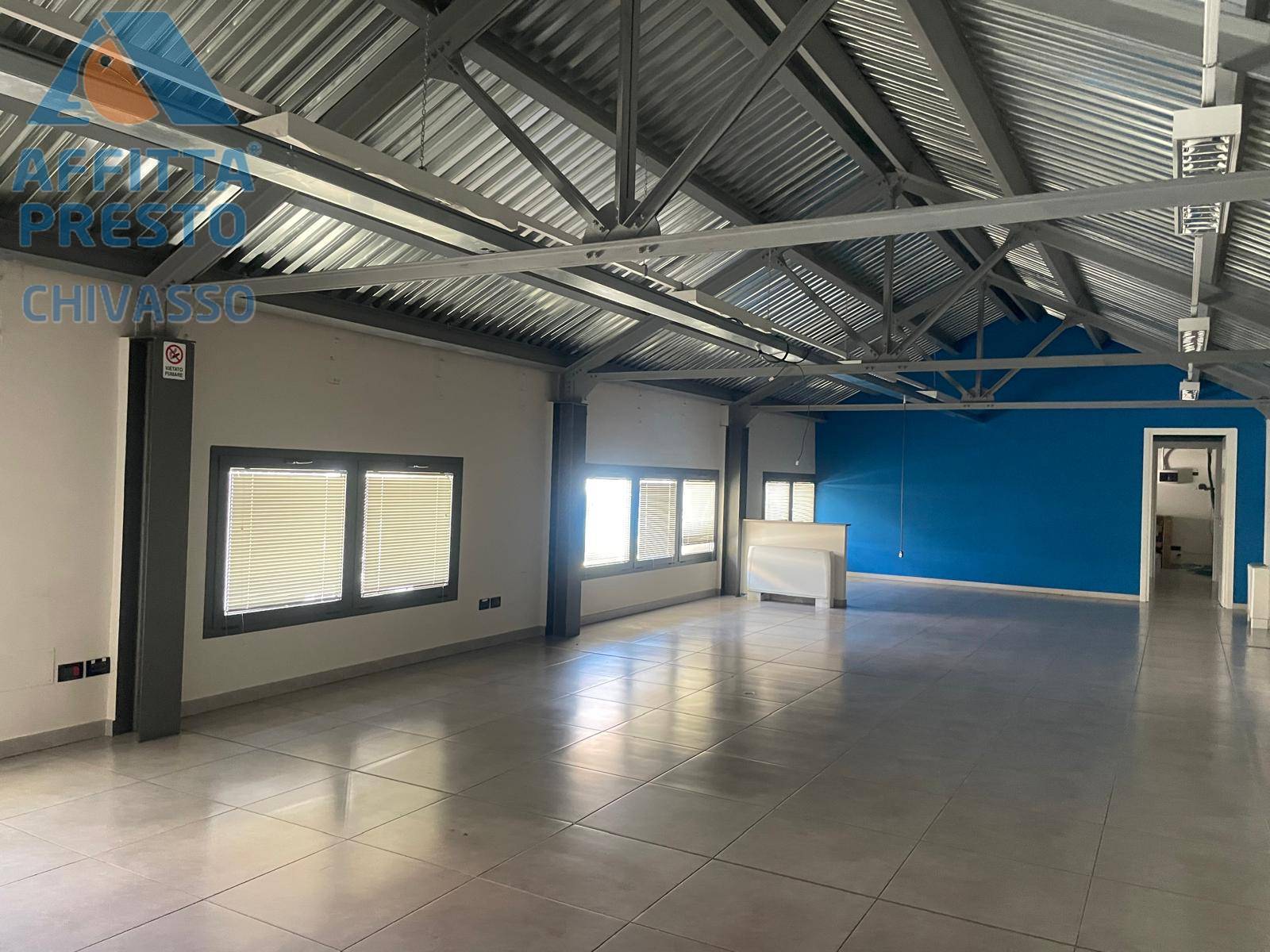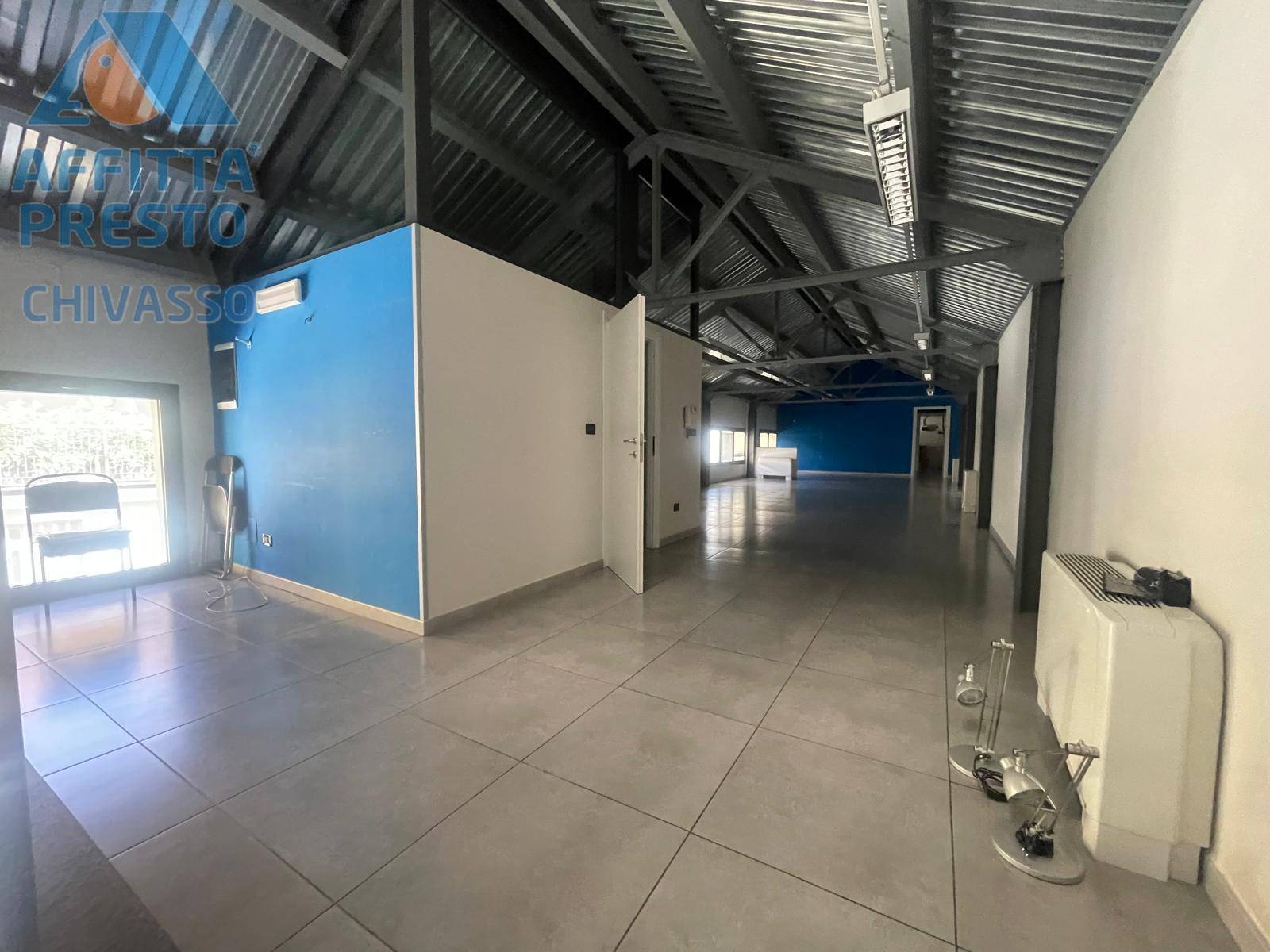 RIF 597 AFFITTA PRESTO CHIVASSO Questa soluzione in affitto a Chivasso si sviluppa su due livelli, offrendo un'ampia e funzionale area di lavoro di circa 300 metri quadrati complessivi. Situato al piano terra di un edificio di un solo livello, g...