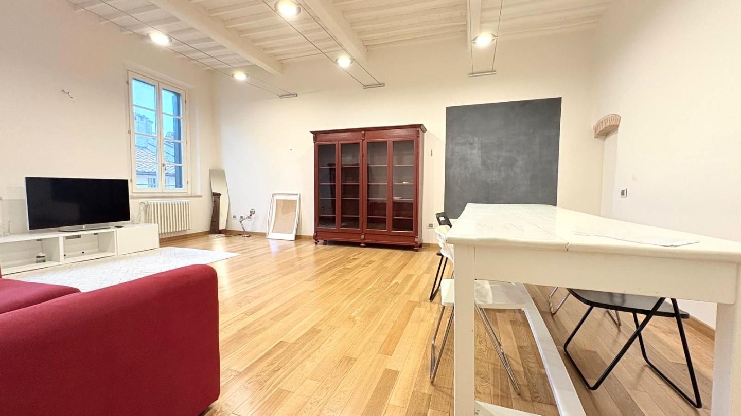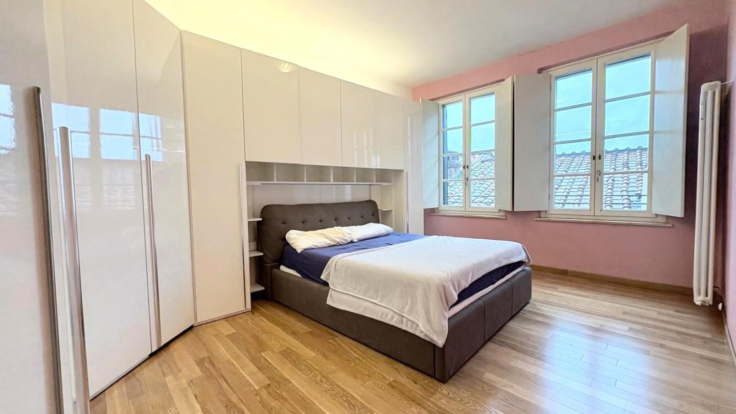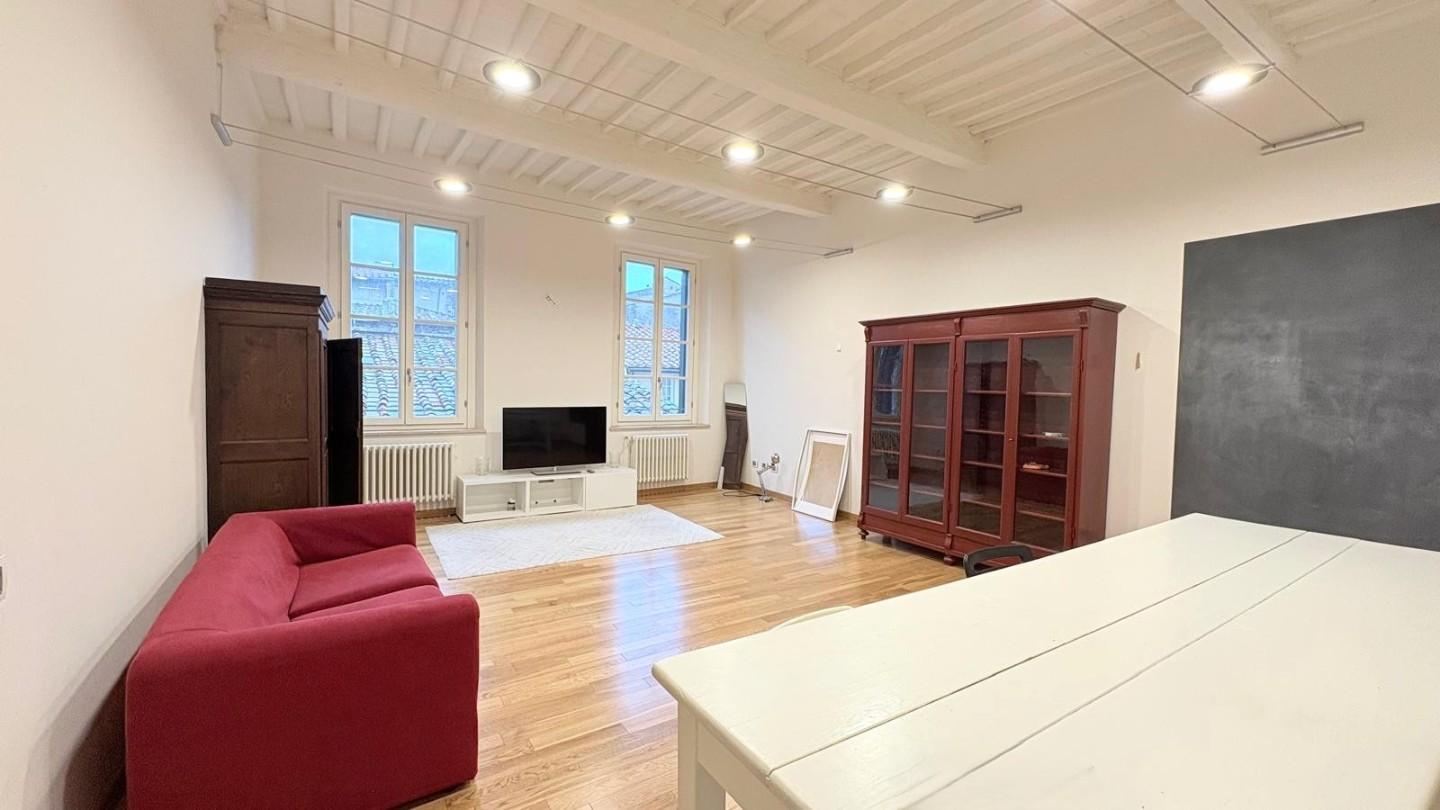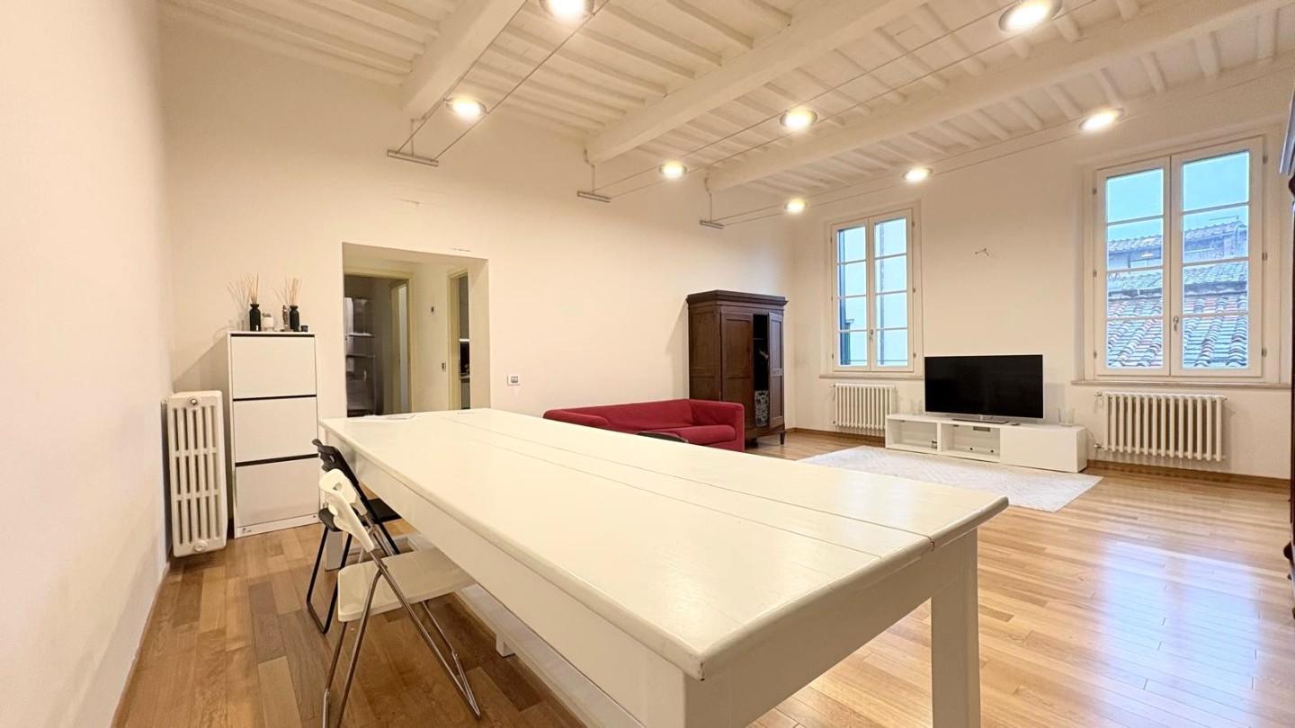 Lucca, centro storico, posto su via centralissima ampio e luminoso appartamento di 100 mq posto al piano quarto (78 scalini con scala comoda) completamente ristrutturato composto da ingresso, soggiorno di circa 40 mq, cucina abitabile, disimpegn...