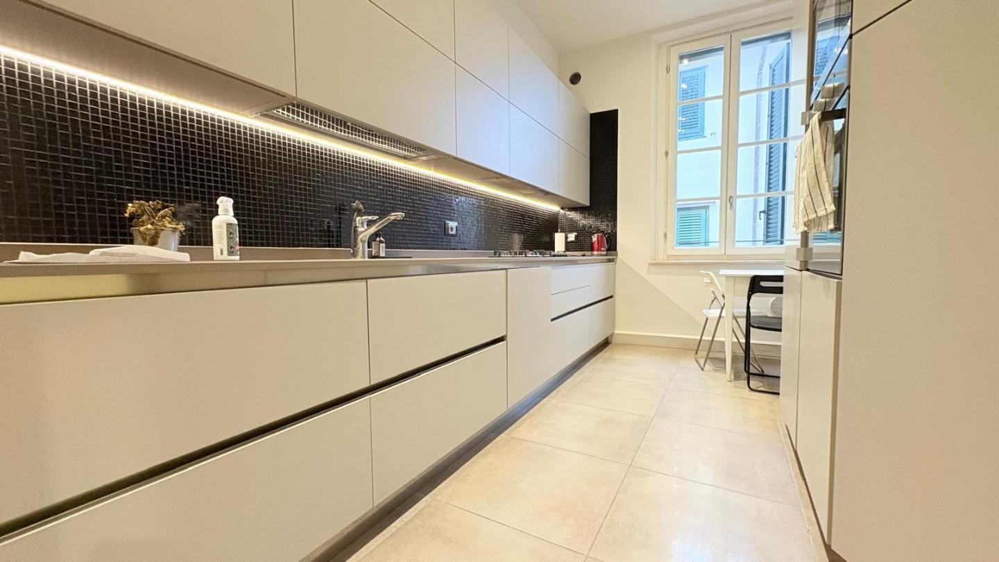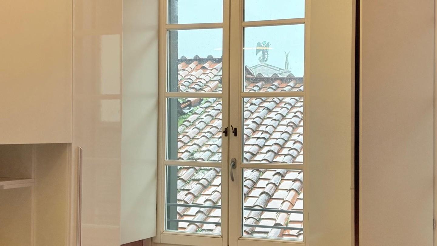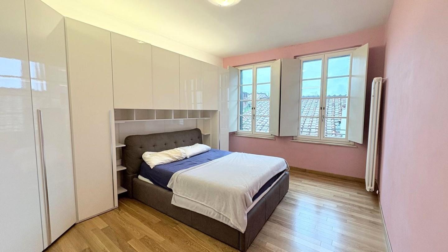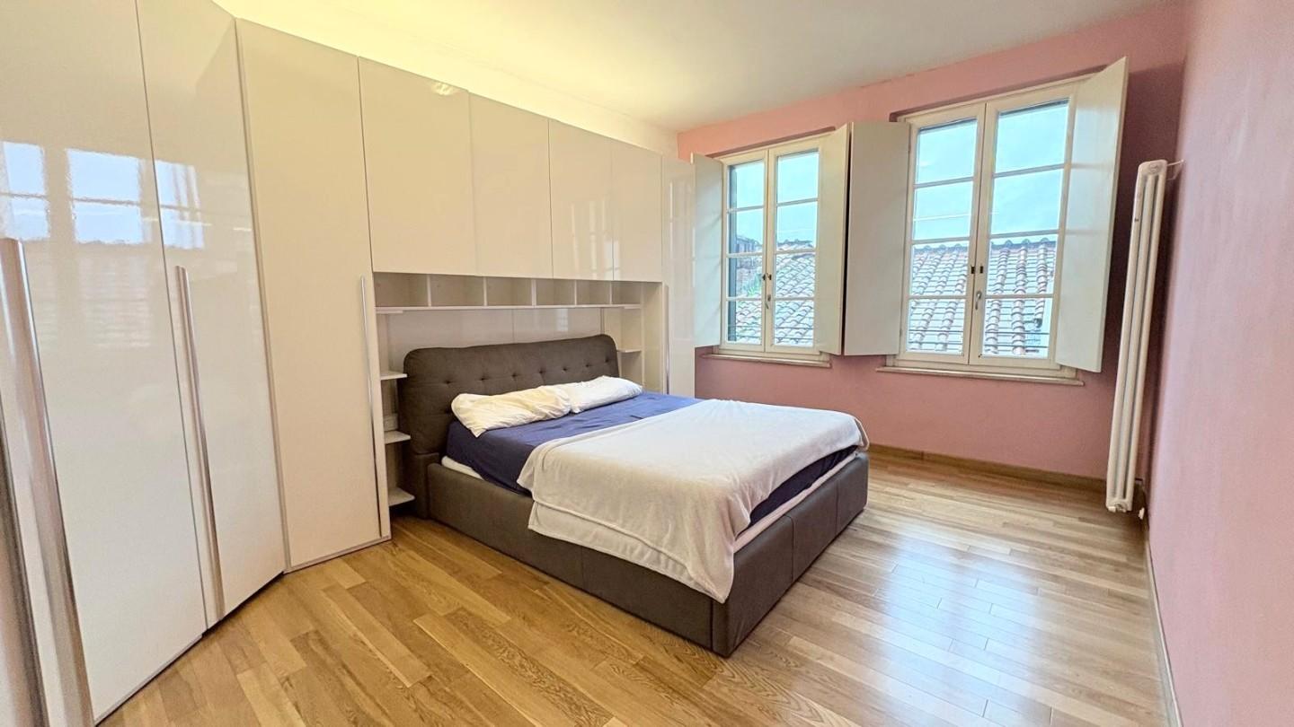 Lucca, centro storico, posto su via centralissima ampio e luminoso appartamento di 100 mq posto al piano quarto (78 scalini con scala comoda) completamente ristrutturato composto da ingresso, soggiorno di circa 40 mq, cucina abitabile, disimpegn...