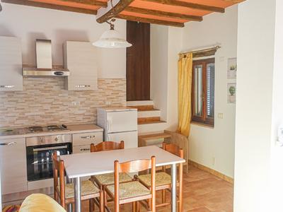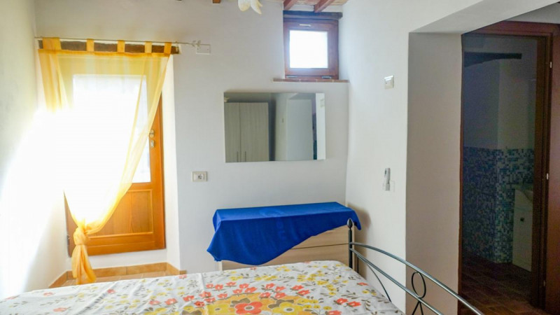 Porzione di fabbricato, in pietra, ristrutturata recentemente e disposta su tre livelli, di complessivi 45 mq e così composta: al piano terra si trova la camera matrimoniale, il bagno e il vano scala di accesso al piano primo in cui si trova la zo...