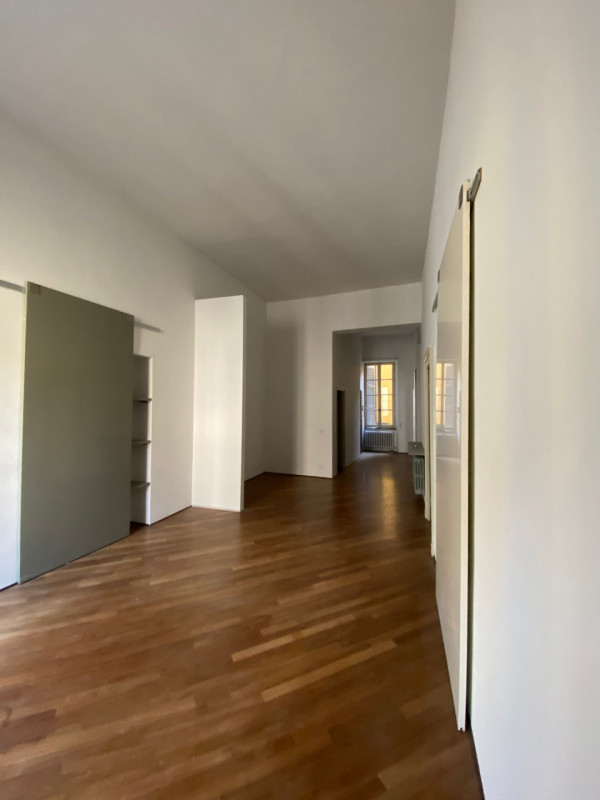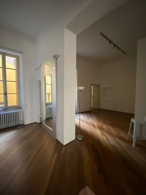 Prestigioso appartamento al piano nobile con ascensore in palazzo storico a due passi dal Duomo e da via Cavour. E' composto da ingresso, luminoso e ampio soggiorno, sala da pranzo con accesso a terrazzo abitabile, cucina arredata, camera matrim...