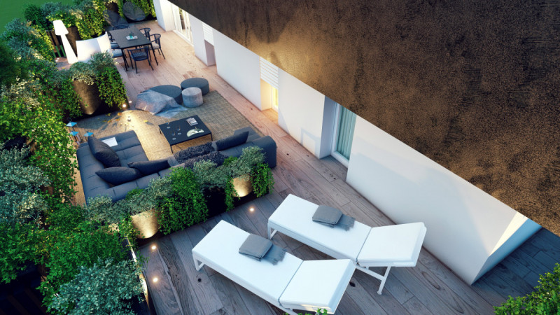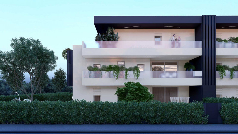 Ultimo attico con terrazzo di 100 mq circa ed una profondita' di otto ml, tre camere da letto due bagni ed una zona giorno di cinquanta mq garage e due posti auto di propieta'.Edificato in classa A4 dotato di impianto fotovoltaico e pompa di calor...