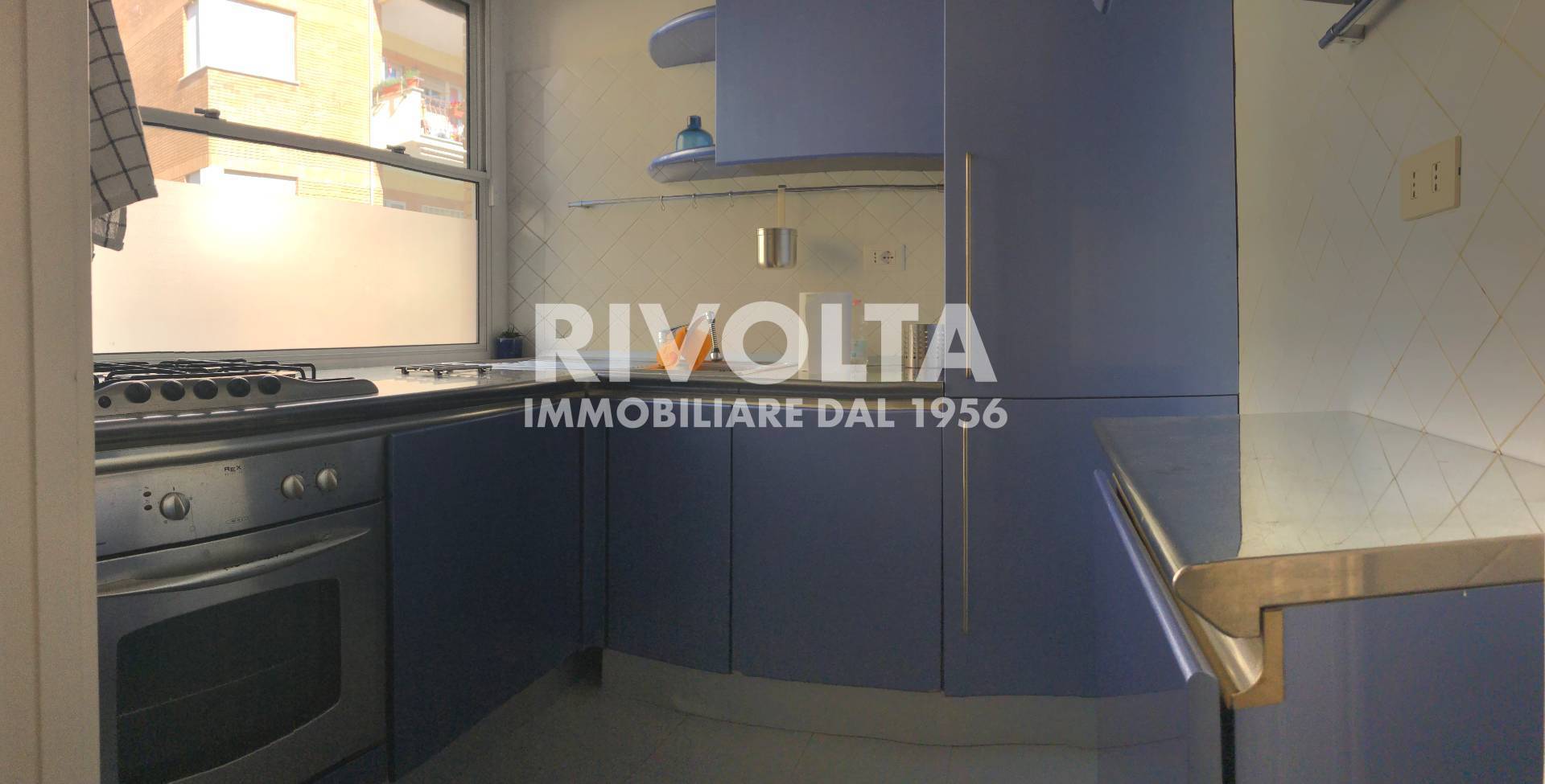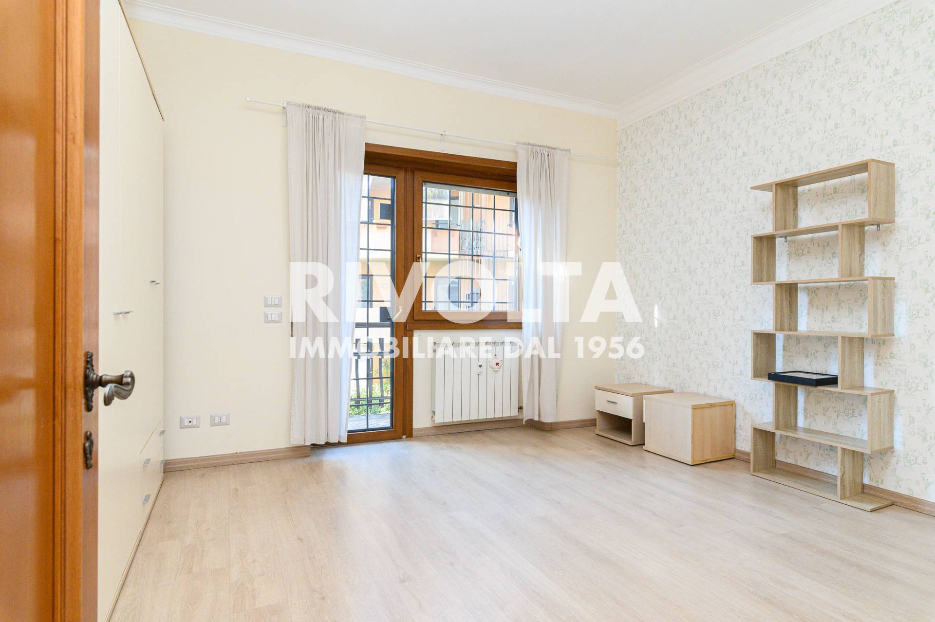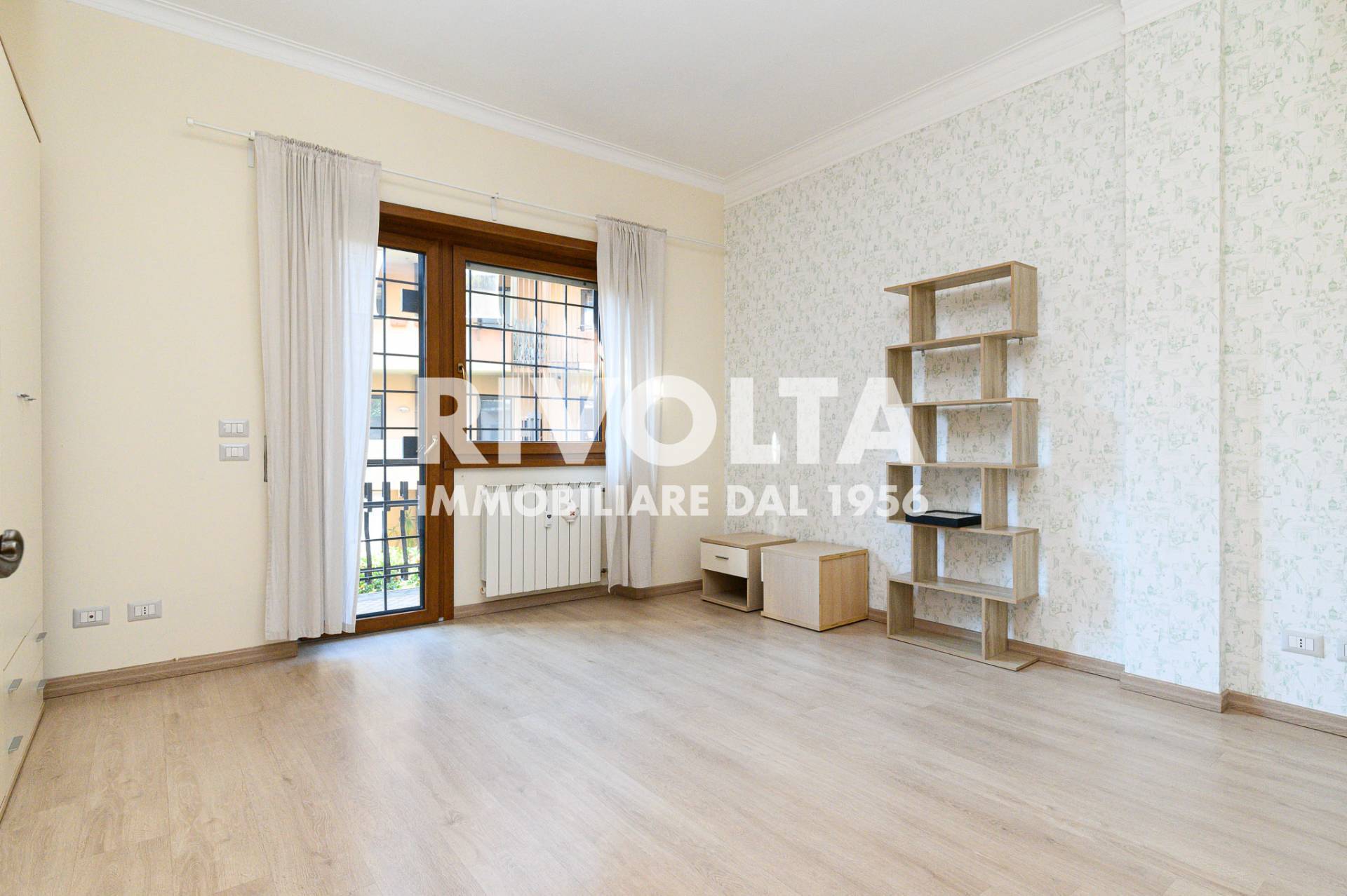 Rivolta affitta in esclusiva - Vigna Stelluti in condominio signorile con servizio di portineria con affaccio interno silenzioso e molto luminoso appartamento ristrutturato di 60 mq al 2° piano composto da ingresso con libreria su misura, soggiorn...