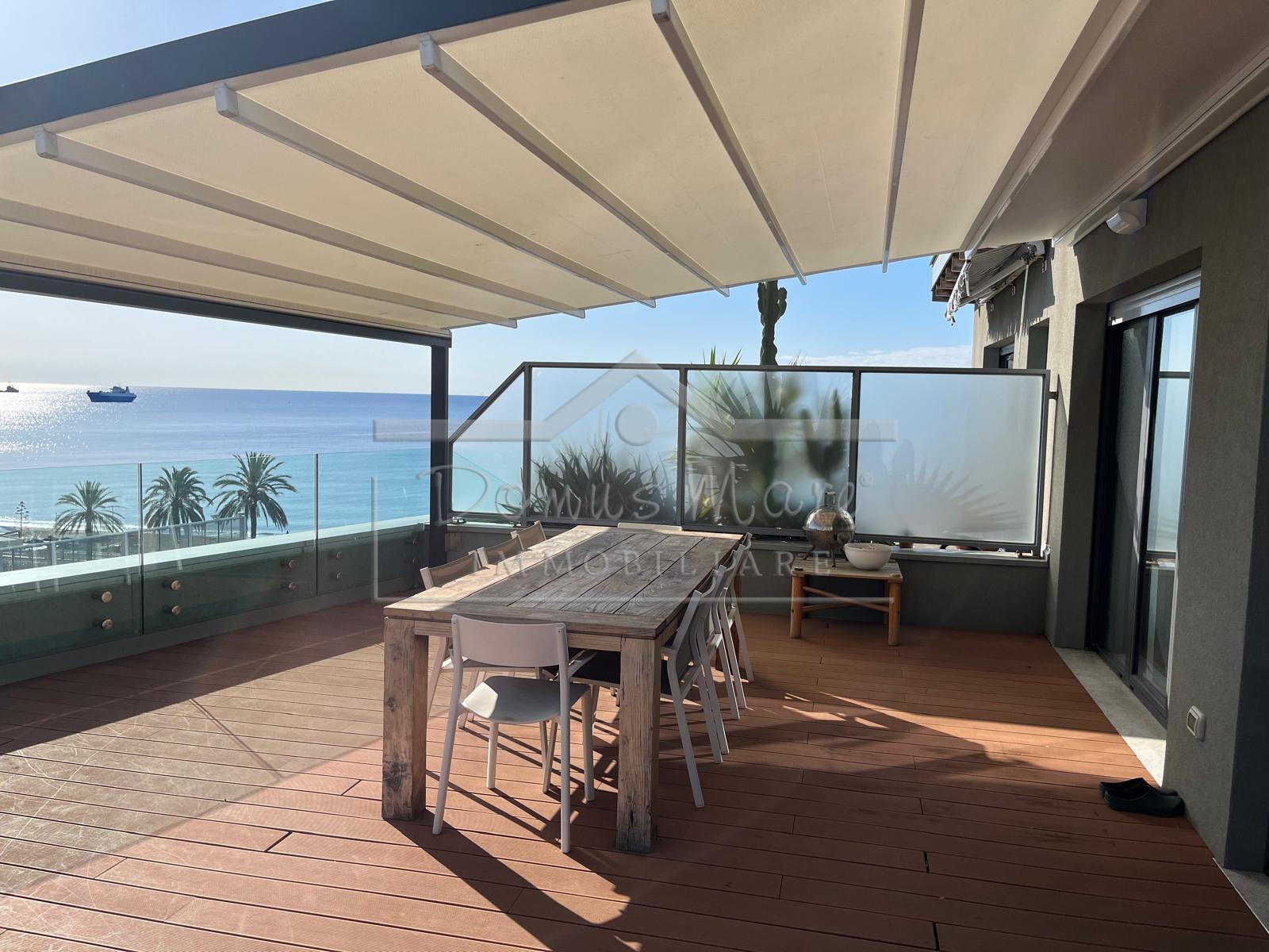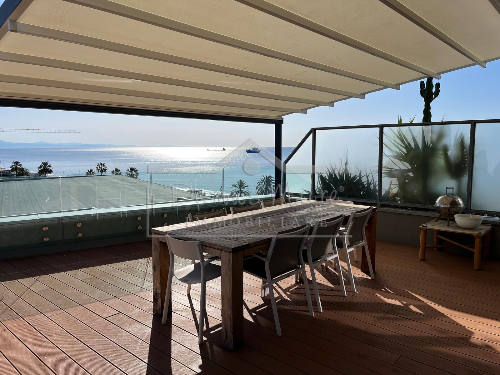 in Vendita Attico fronte mare di 150 mq di superficie commerciale in stabile di recente costruzione. L'appartamento, posto su due livelli, è composto da ingresso in ampia zona living con cucina a vista, due camere da letto, bagno; Il secondo livel...