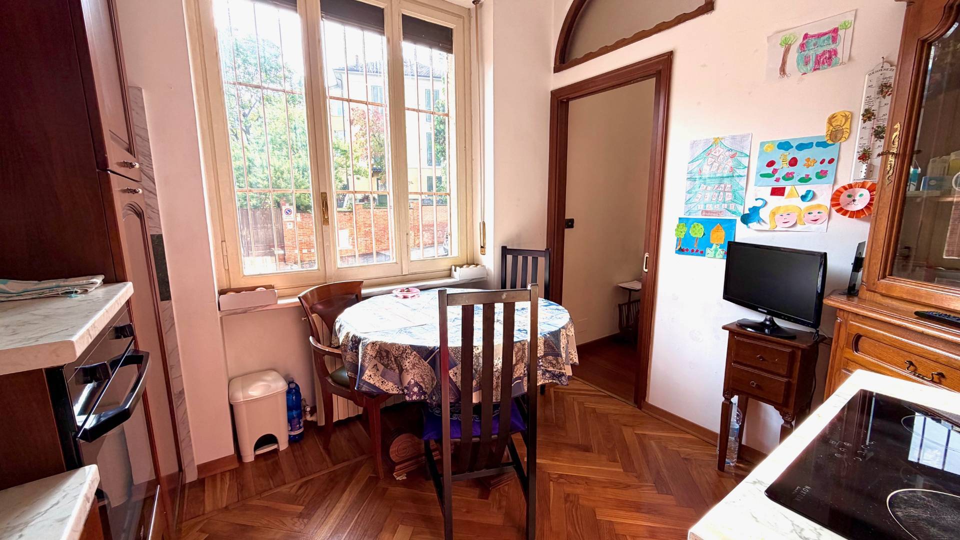 Precollina - Via Lomellina n°49, al piano rialzato di una elegante palazzina degli anni "50", appartamento di c.a. 90 mq. composto da ingresso, soggiorno, due camere, cucina abitabile e doppi servizi. Al piano seminterrato un locale ad uso cantina...