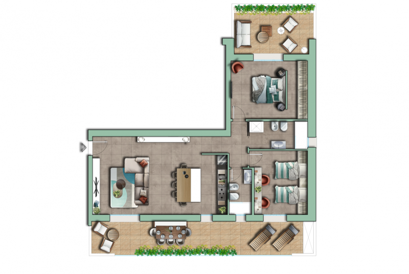 Senigallia, zona ospedale, prossima realizzazione di palazzina di 11 unità immobiliari di varie metrature. Vendesi appartamento al piano terra, di circa 98 mq. Composto da: ingresso, ampio soggiorno con cucina a vista, tre camere, due bagni con r...