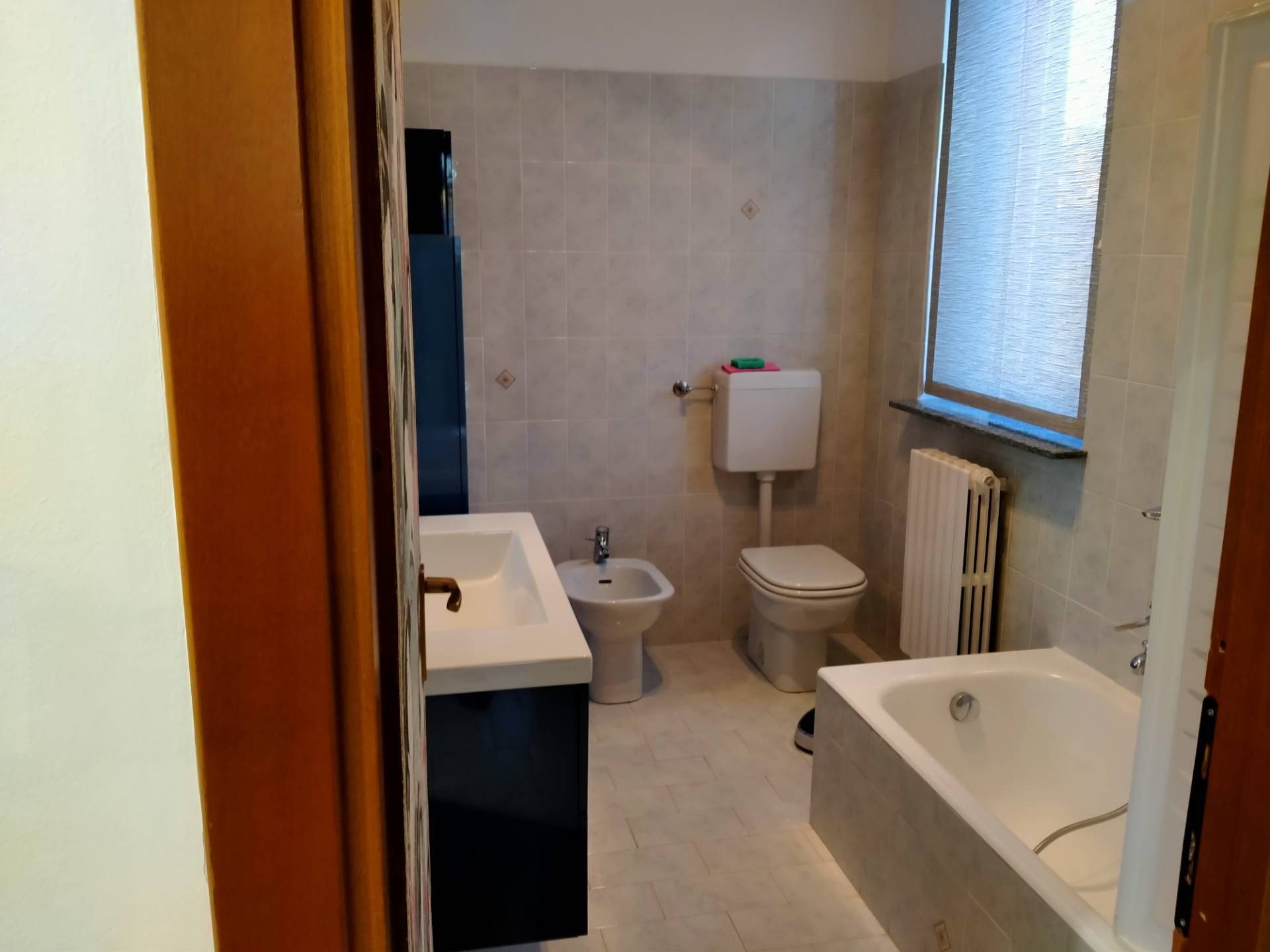 Proponiamo ampio tre locali con cucina separata posto al piano primo. La palazzina fa parte di un complesso residenziale, costituito da altre palazzine, dove al centro troviamo due campi da tennis ed un'ampia zona verde " parco" per poter passegg...