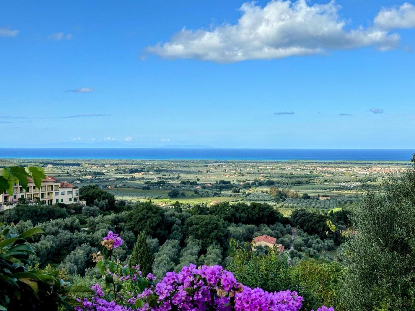 Castagneto Carducci appena fuori dal centro storico in posizione panoramica, vendesi villa singola suddivisa in tre unita' abitative indipendenti. La proprieta' con vista mare e sulla rinomata campagna circostante, a pochi passi dal borgo di Ca...